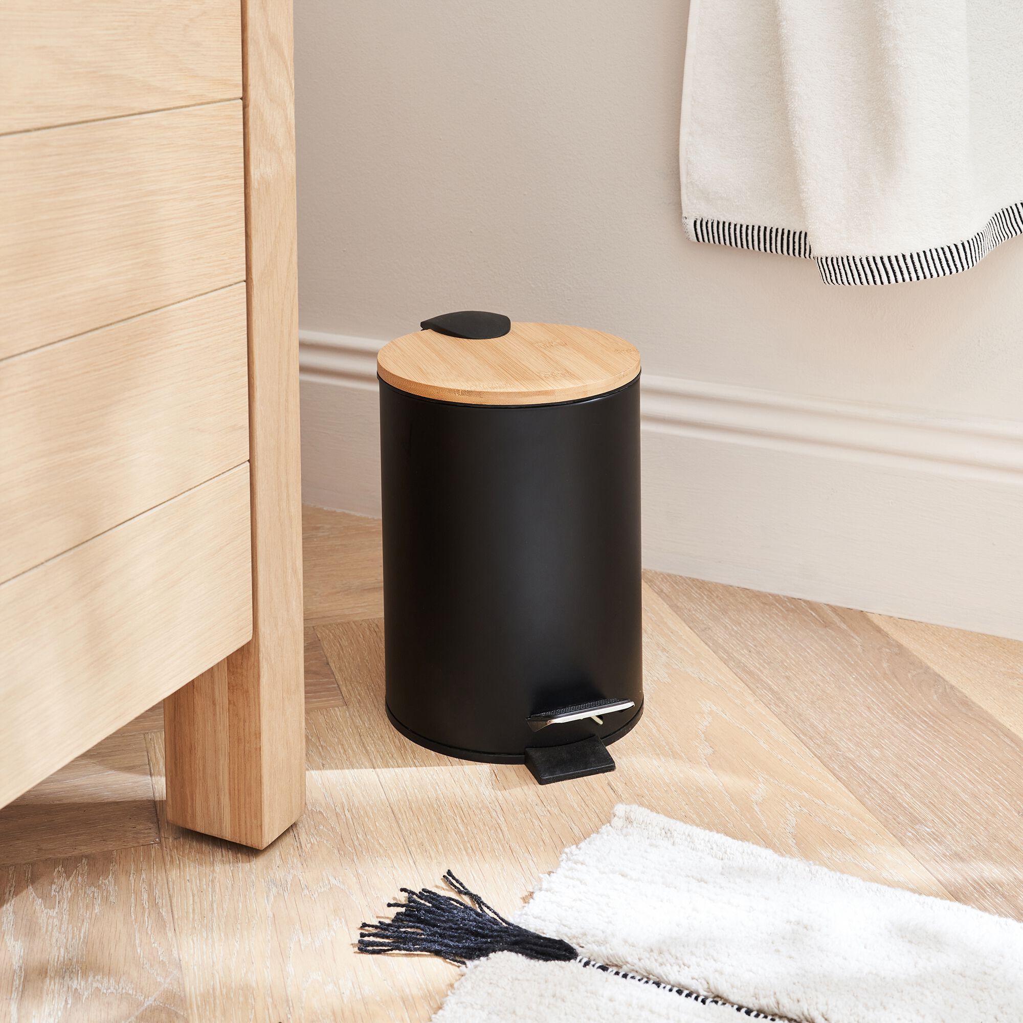 NATYS - Poubelle en métal et bambou 2,5L - noir