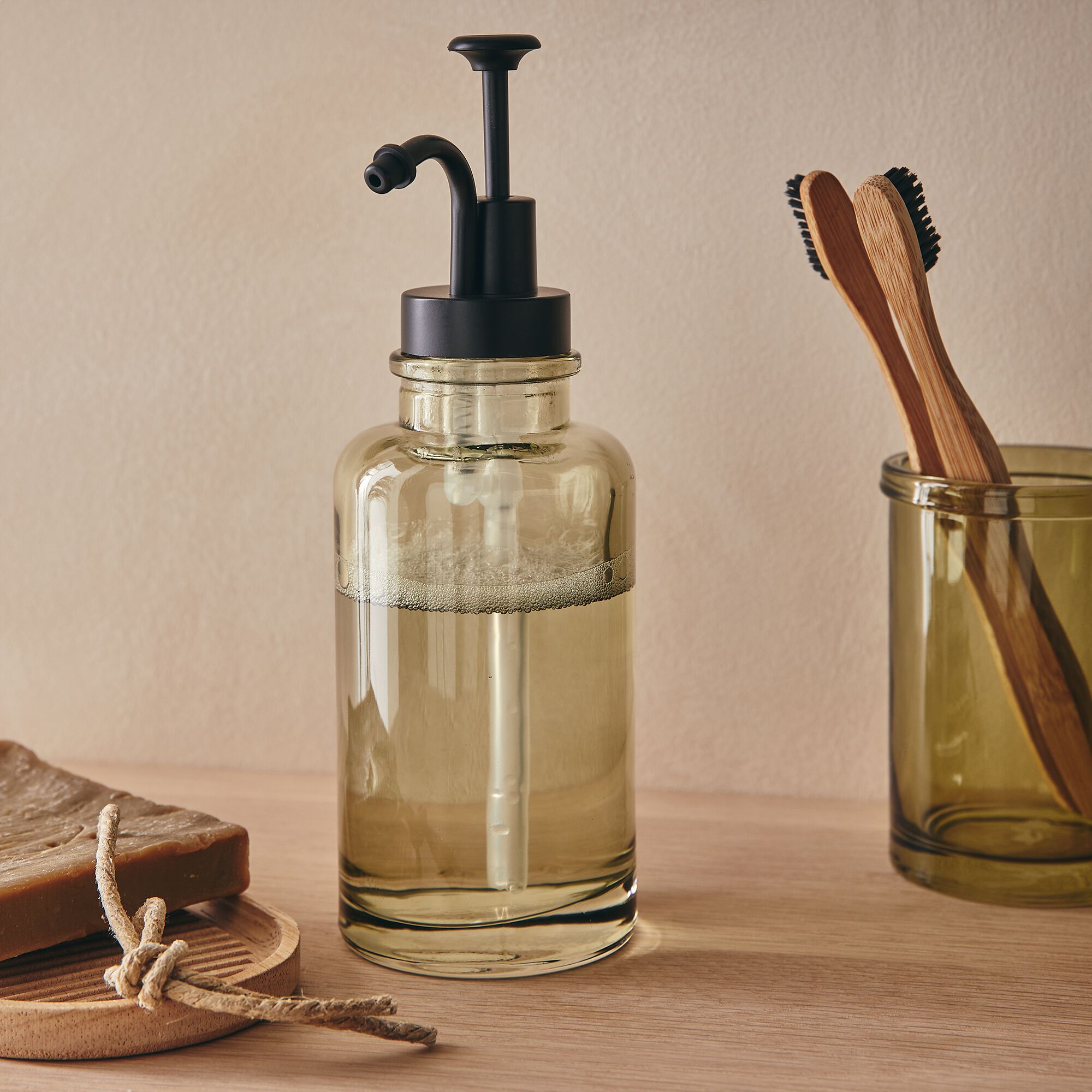 MIMOSA - Porte brosse à dent en verre - vert garrigue