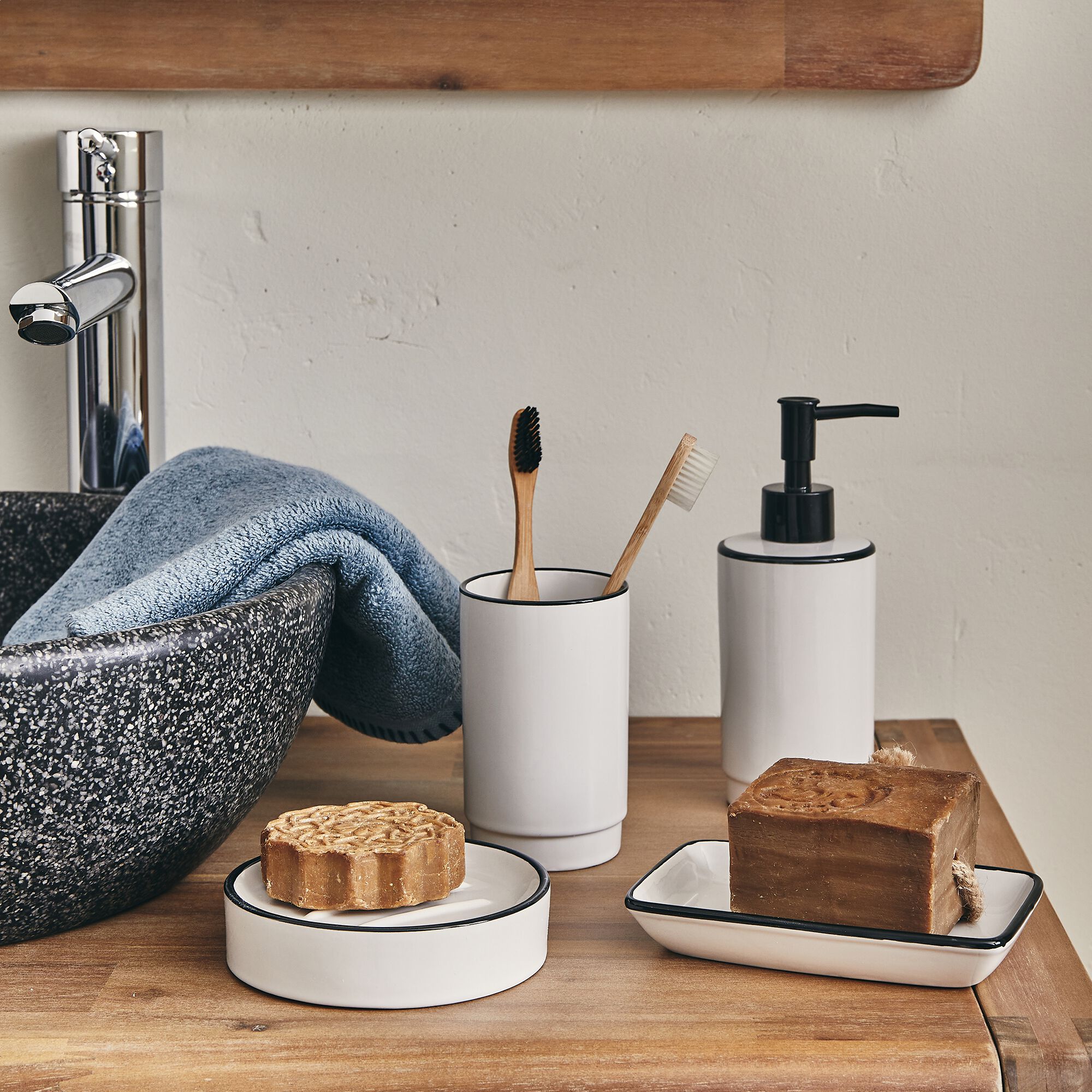 DIVI - Set de salle de bain en grès - noir et blanc