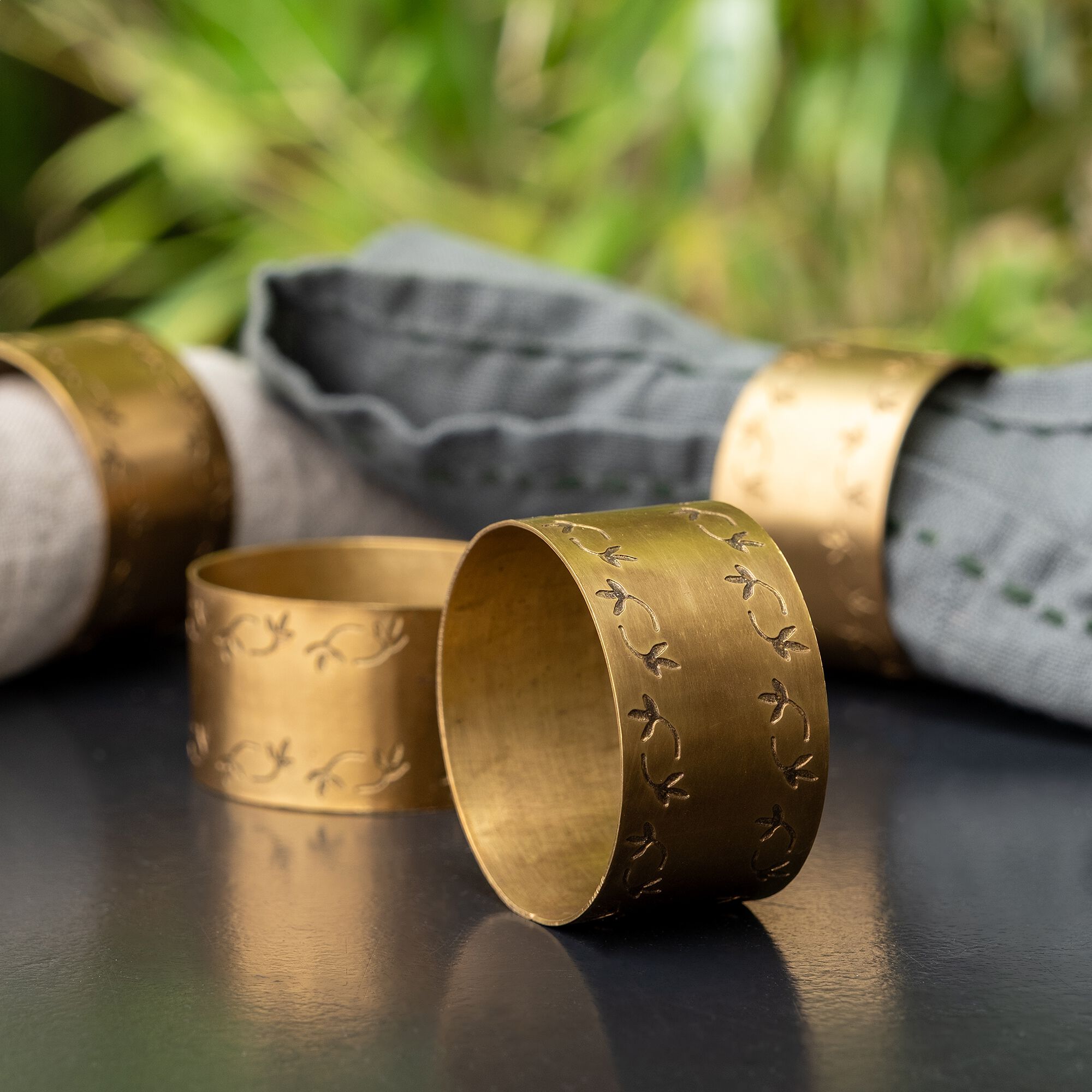 GANGE - Lot de 4 ronds de serviette en laiton - doré