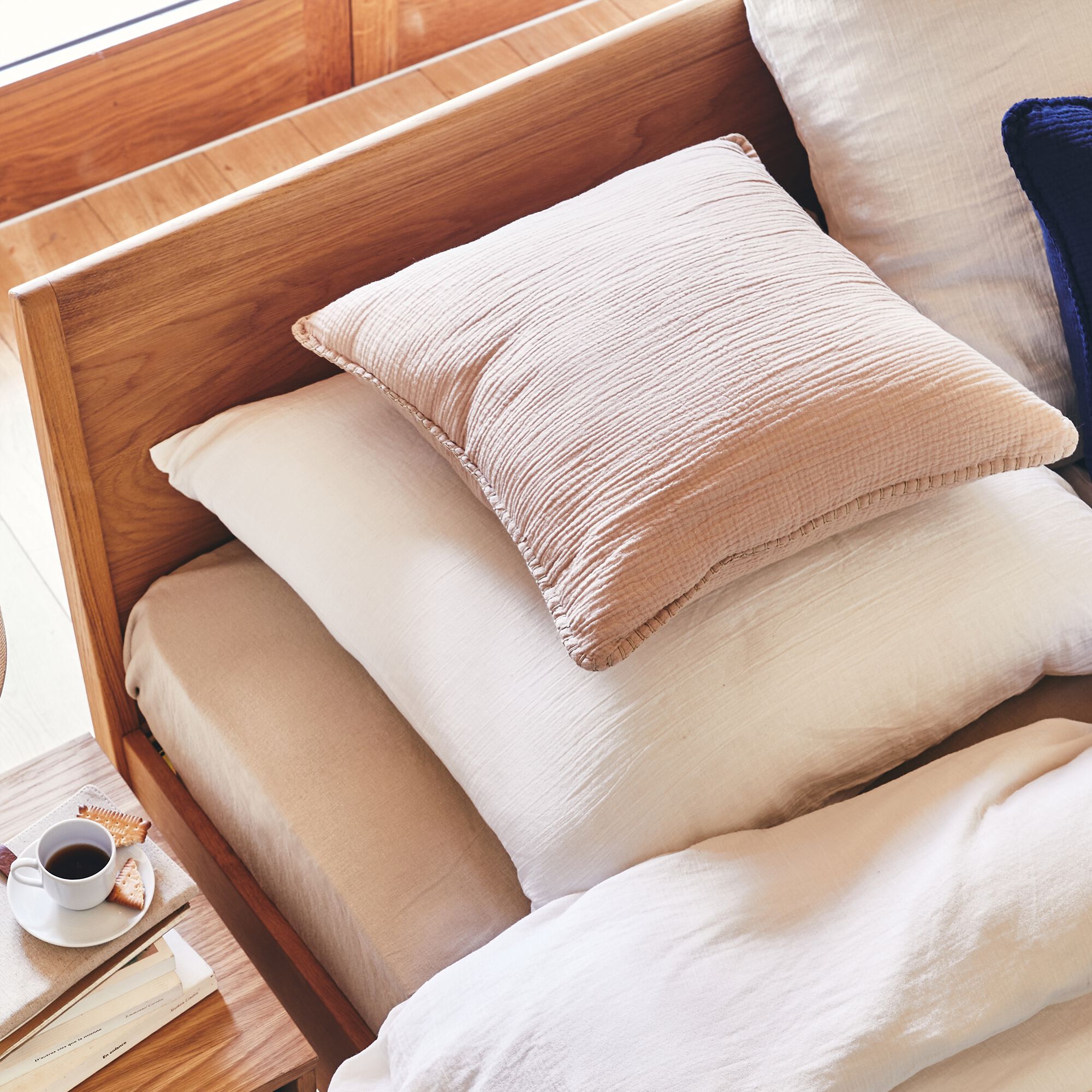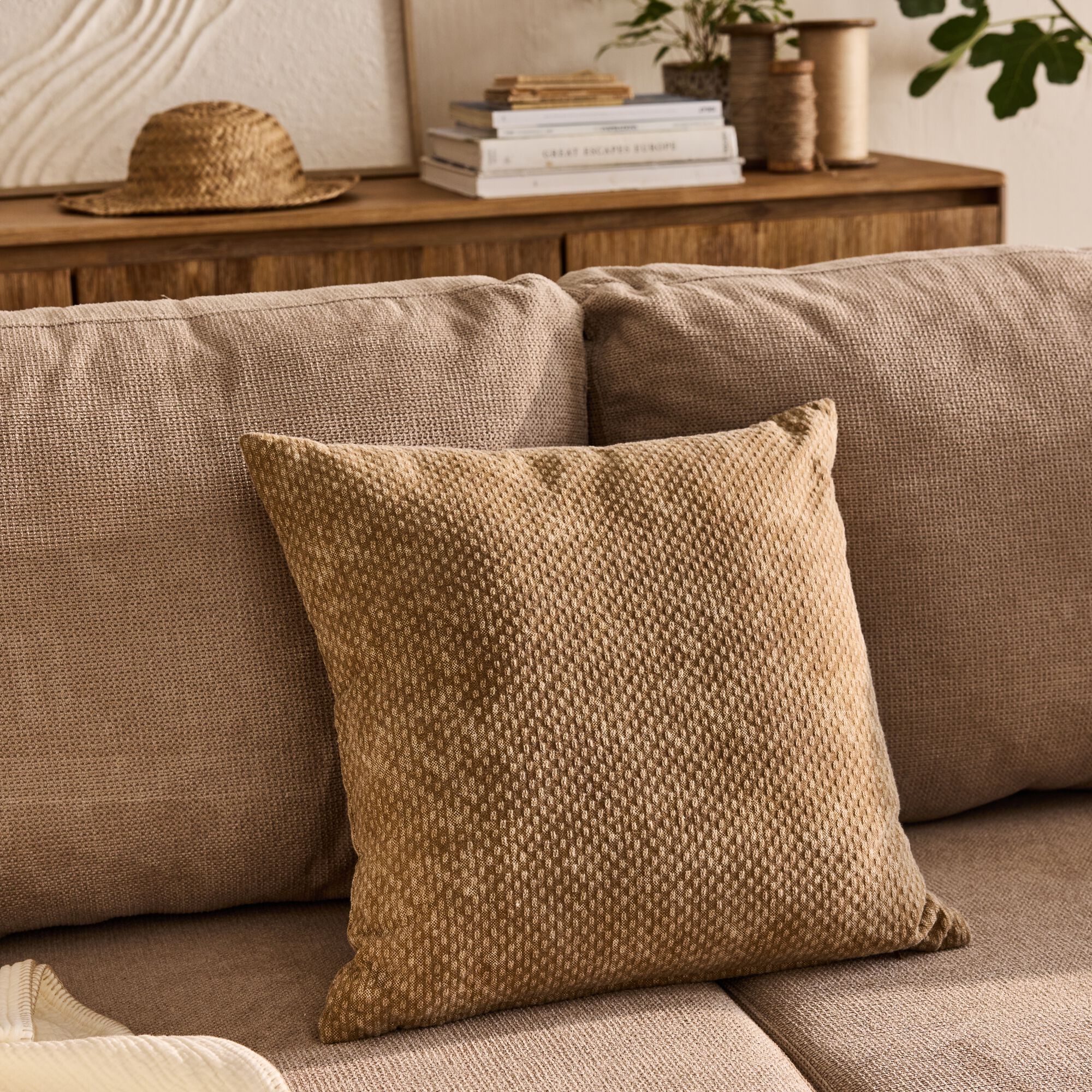 TESSALY - Coussin en gaze de coton 45x45cm - beige alpilles