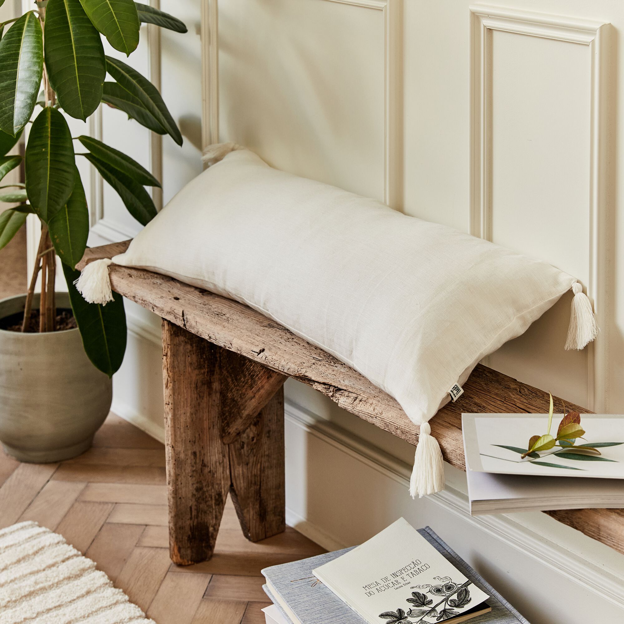 LILANE - Coussin brodé en coton 30x50cm - naturel