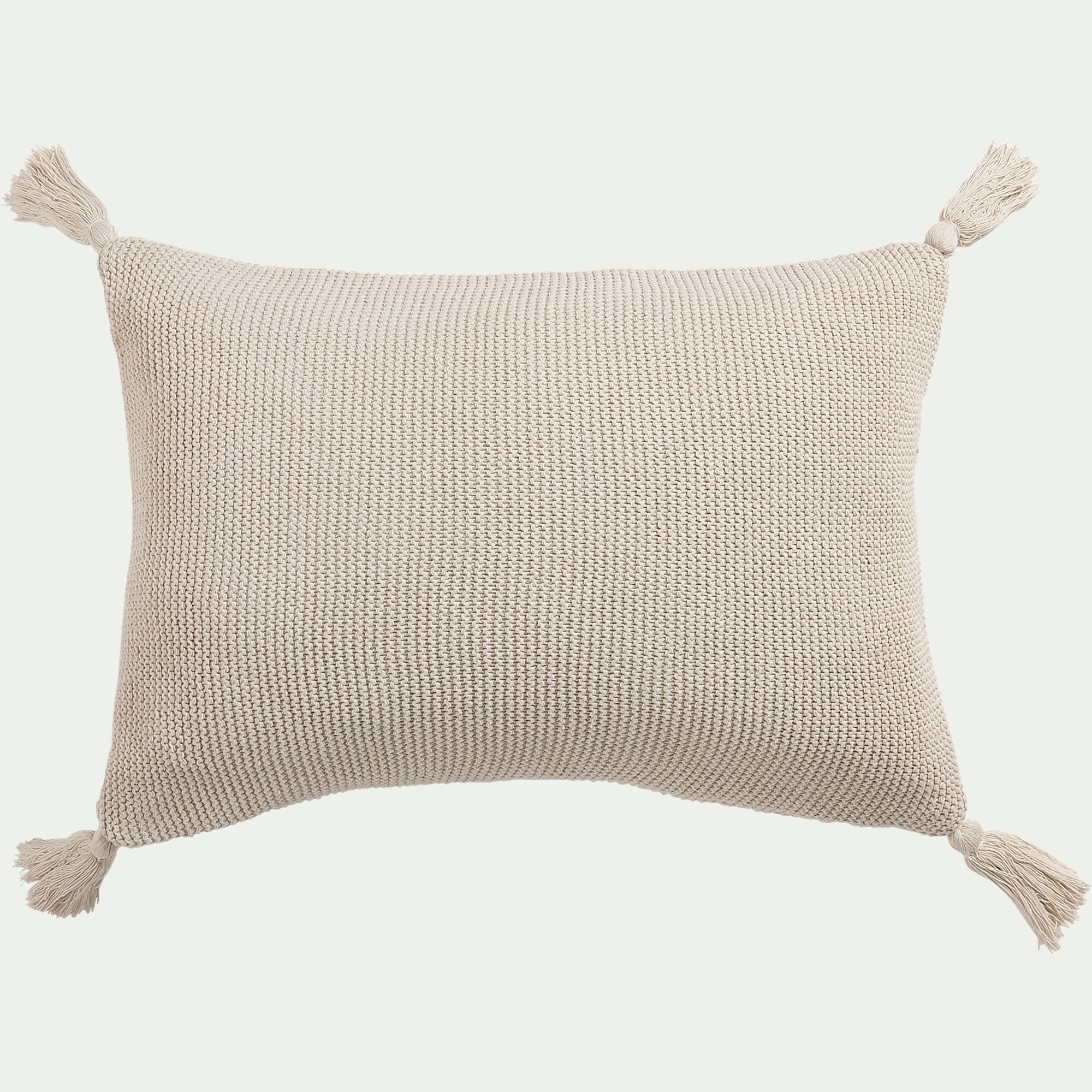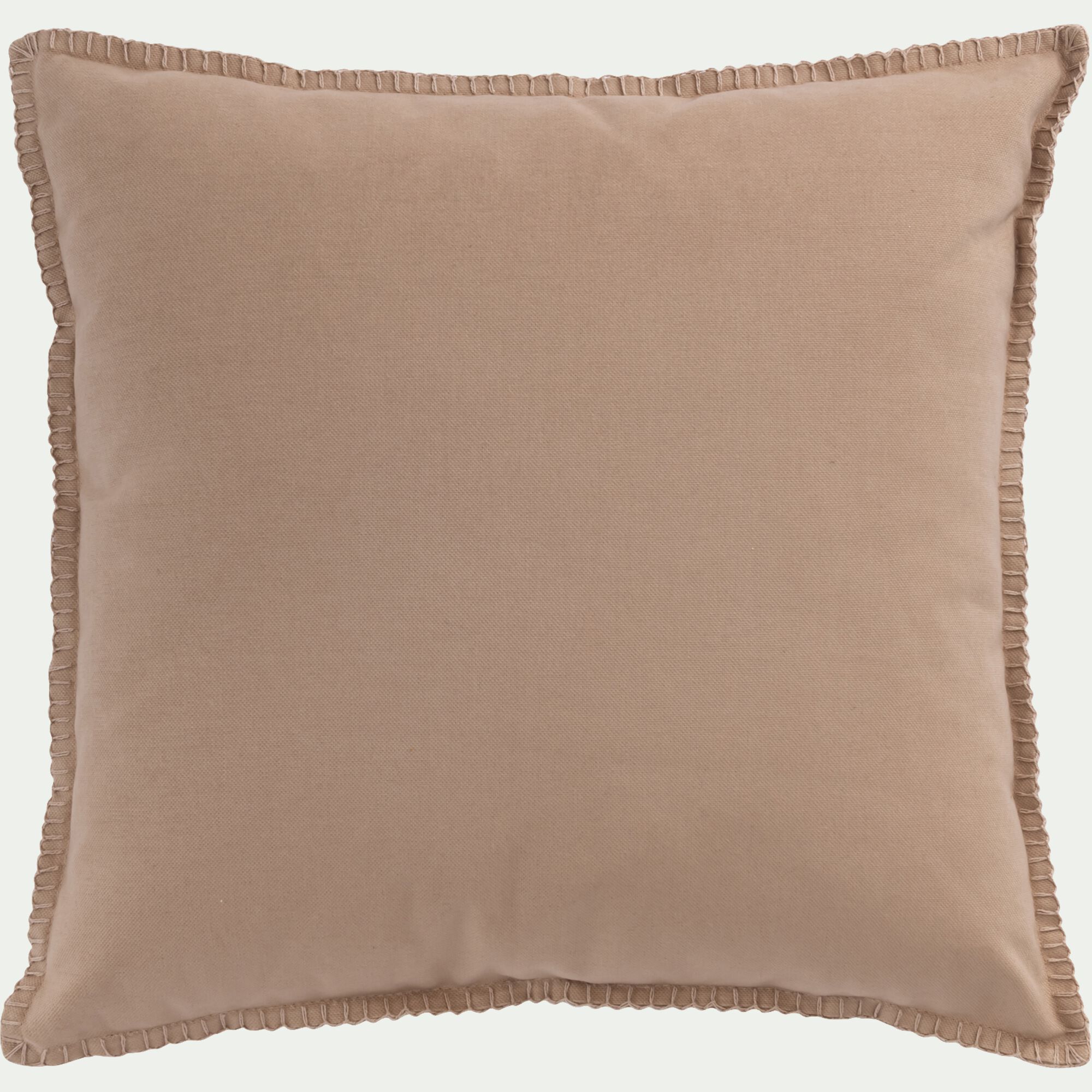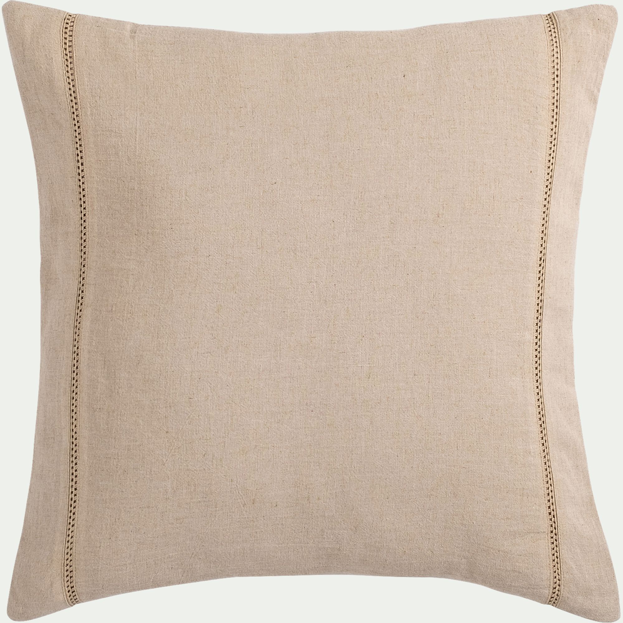 AGDE - Coussin brodé en coton 45x45cm - beige corde