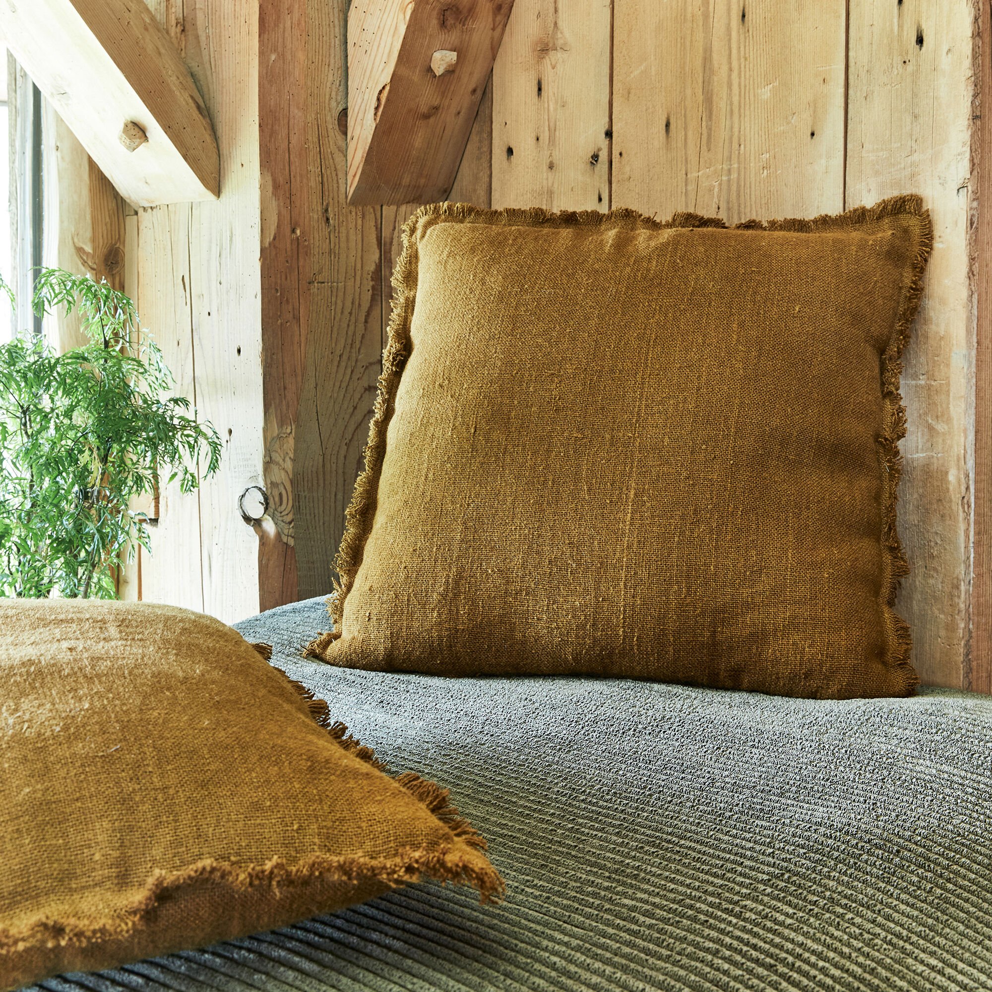 TANTA - Coussin frangé en lin 45x45cm - brun alep