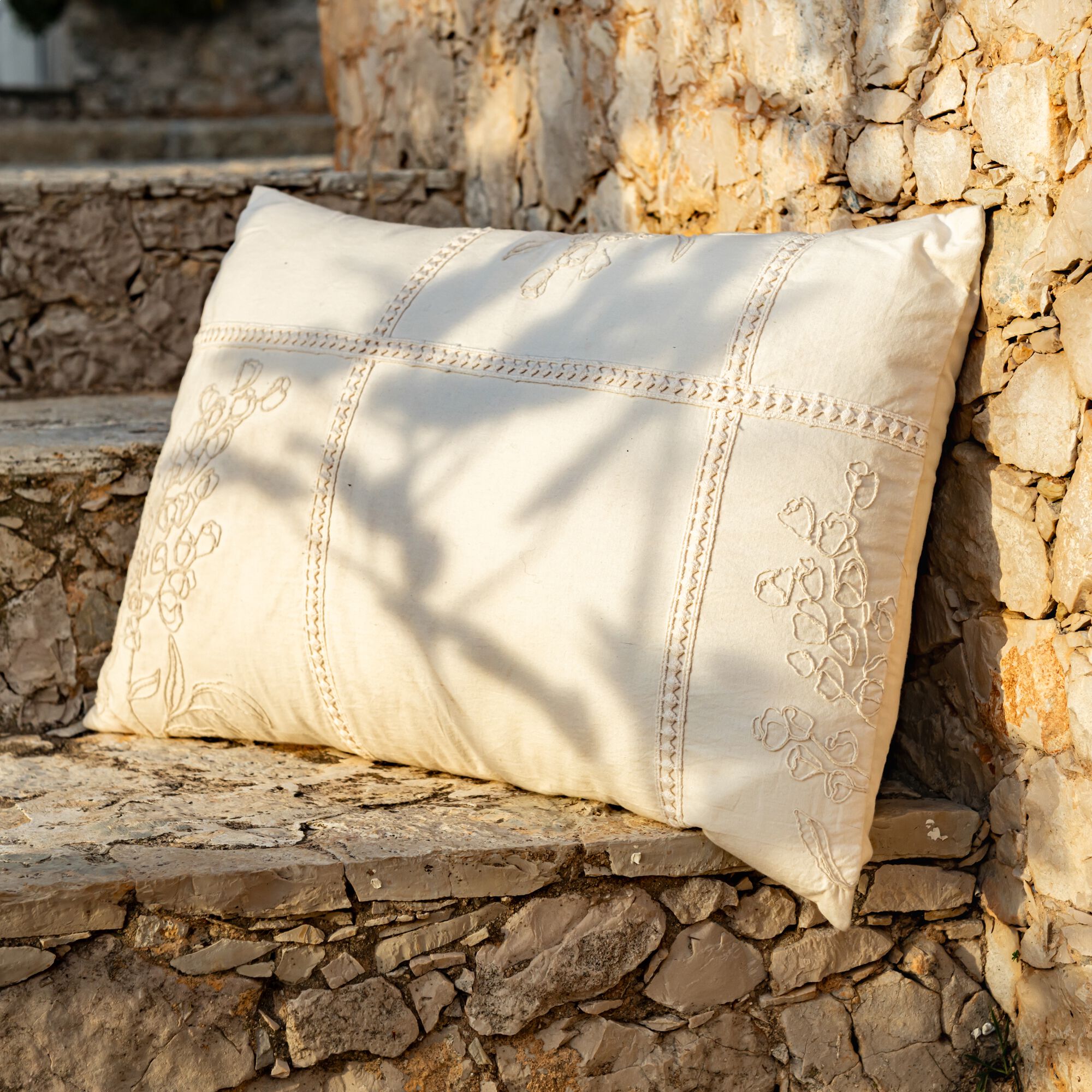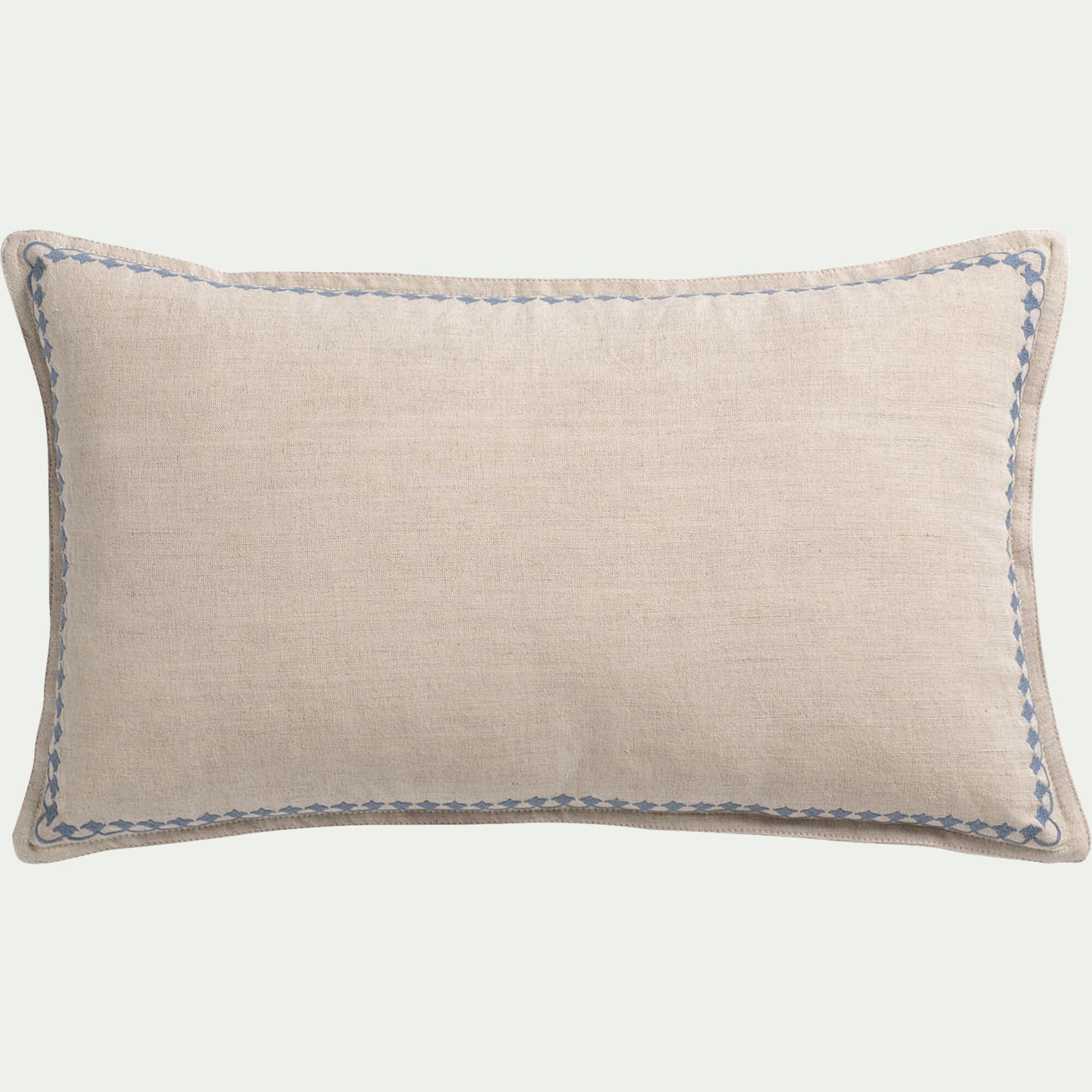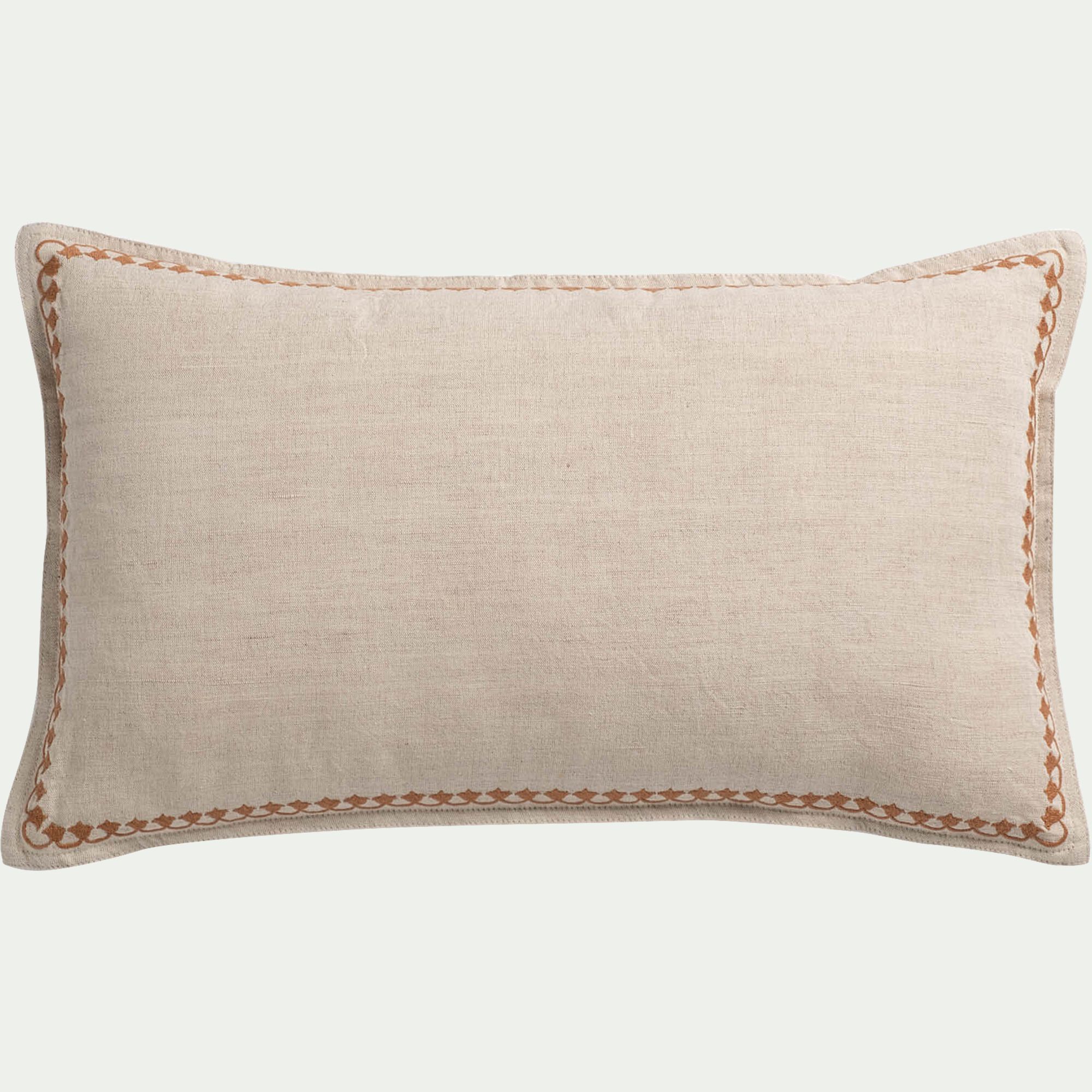 PAINPOL - Coussin brodé en lin et coton 30x50cm - naturel