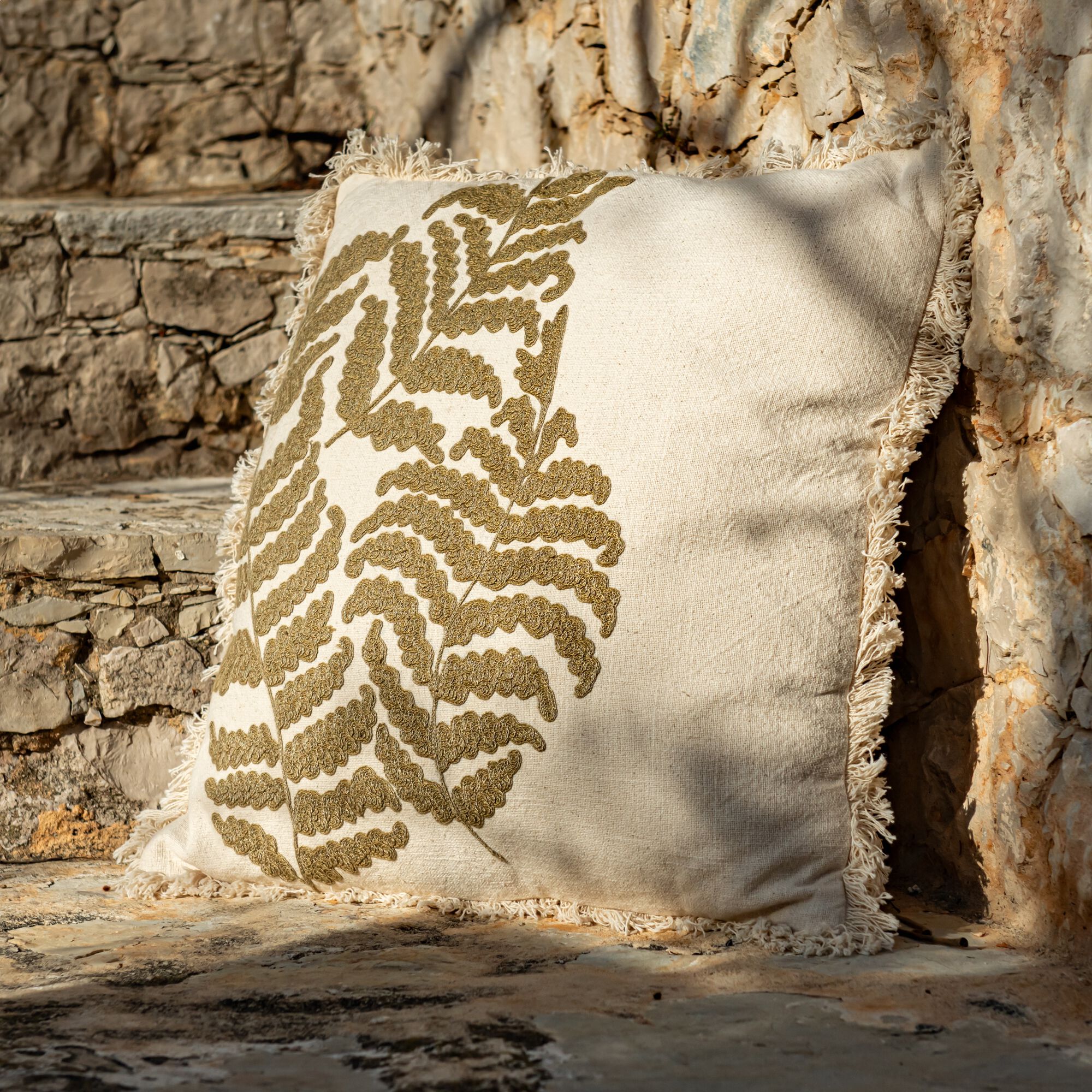 TANTA - Coussin frangé en lin 45x45cm - naturel