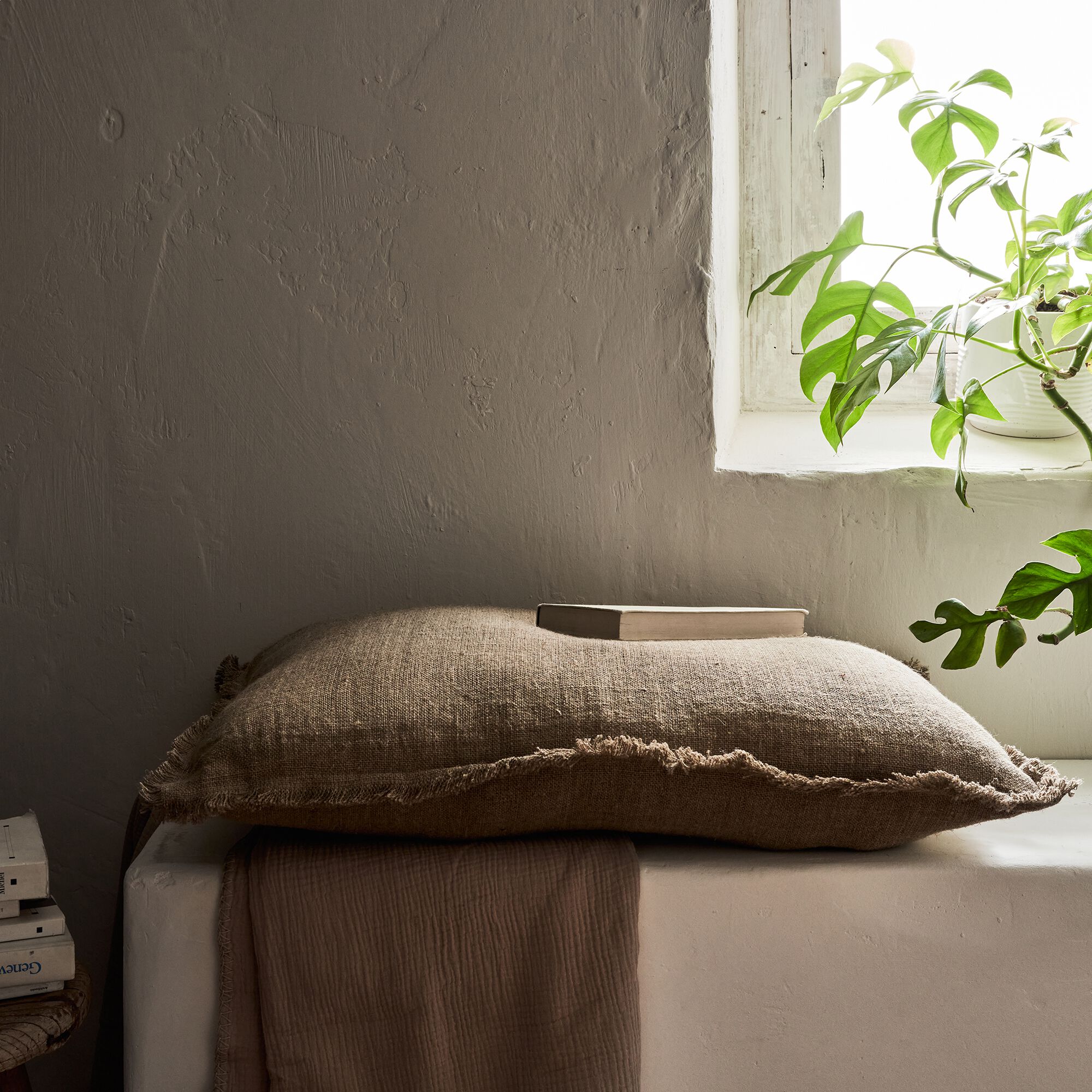 TANTA - Coussin frangé en lin 50x70cm - brun alep