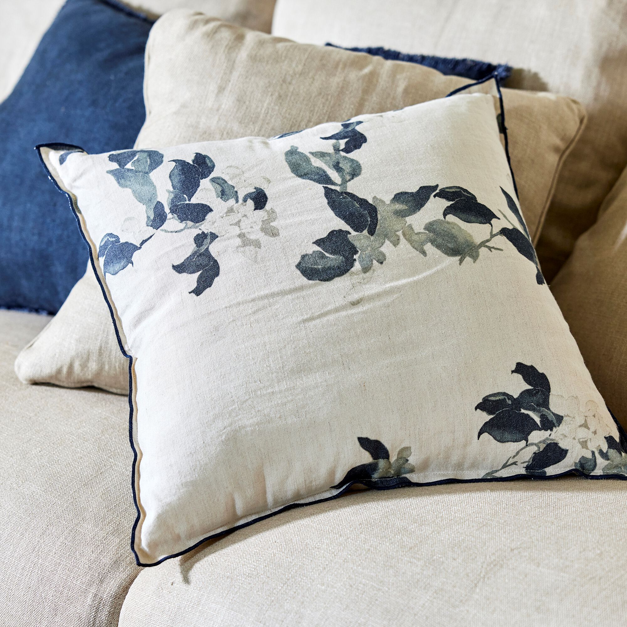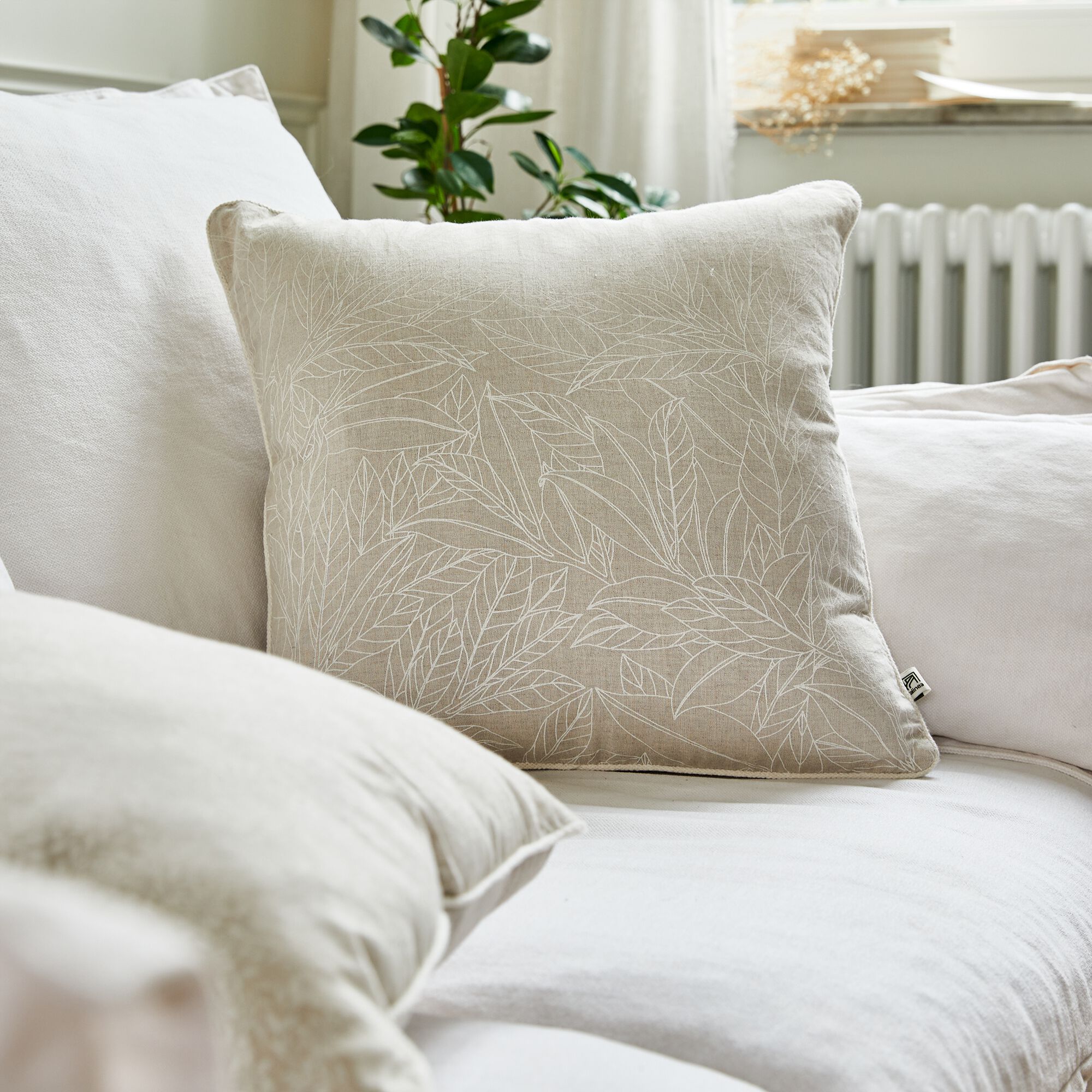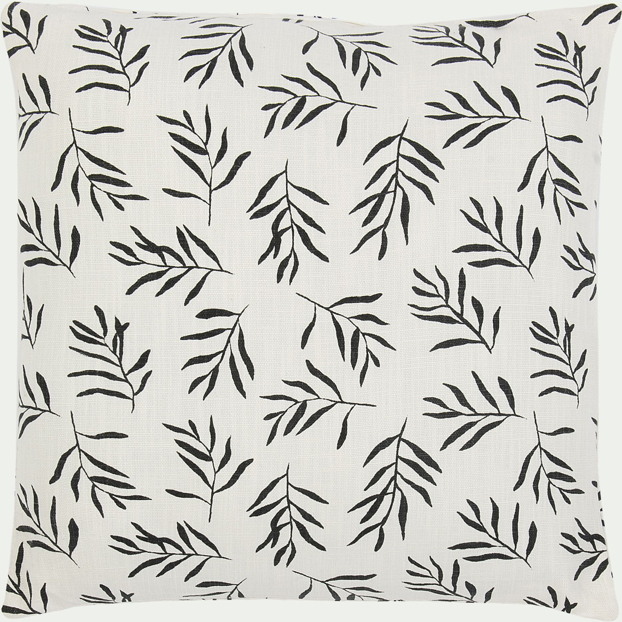 LINH - Coussin motif floral en lin et coton 45x45cm - blanc