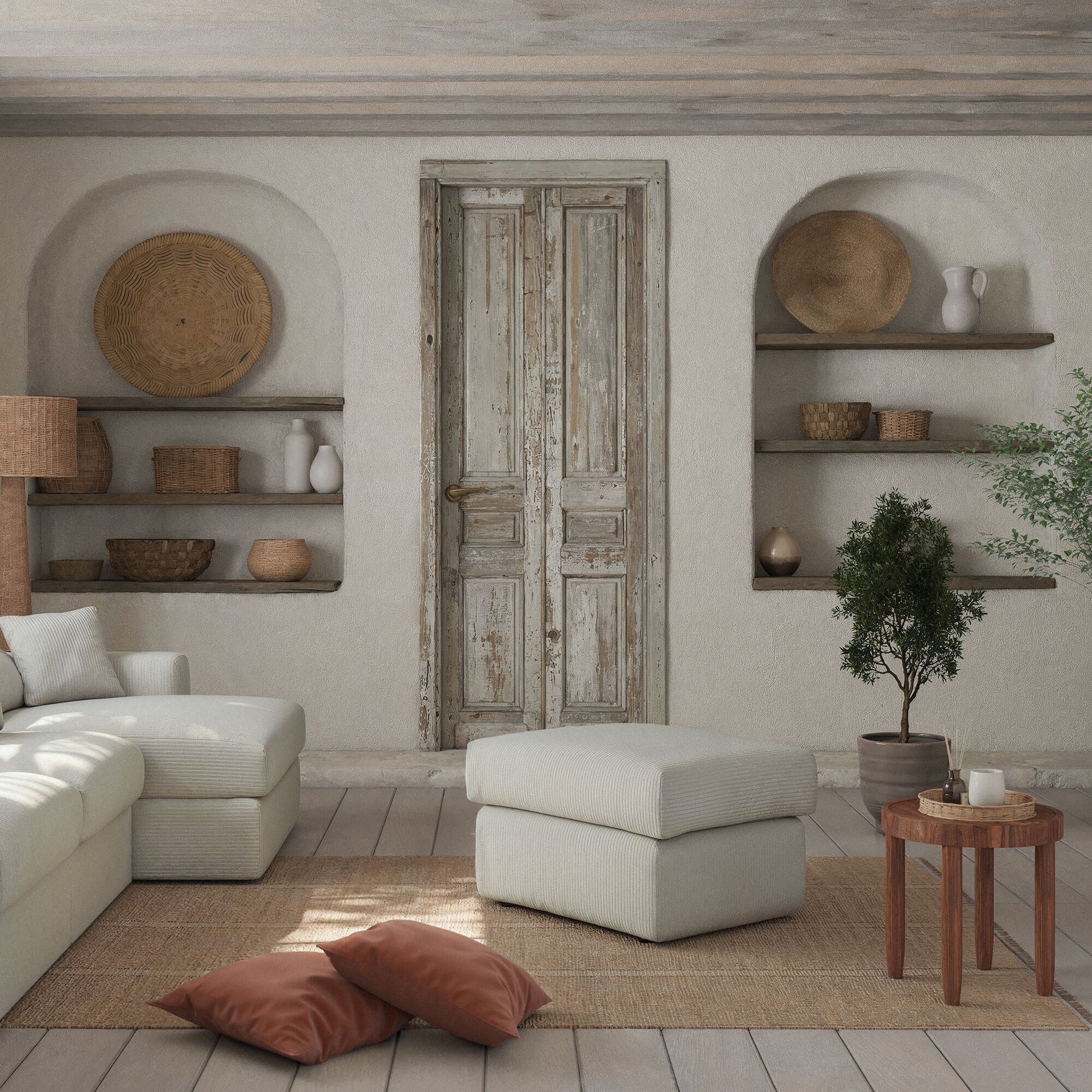 IAN - Pouf cubique en coton - beige D50xH28cm