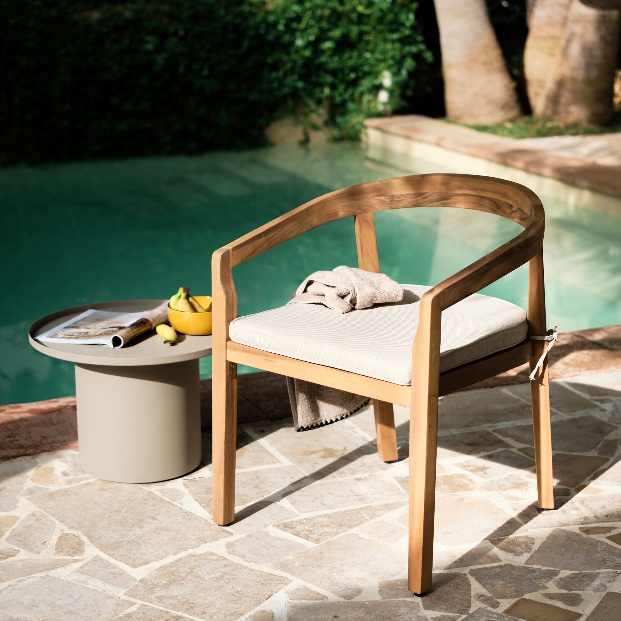 CHICOULA - Chaise de jardin avec accoudoirs en acacia - bois foncé