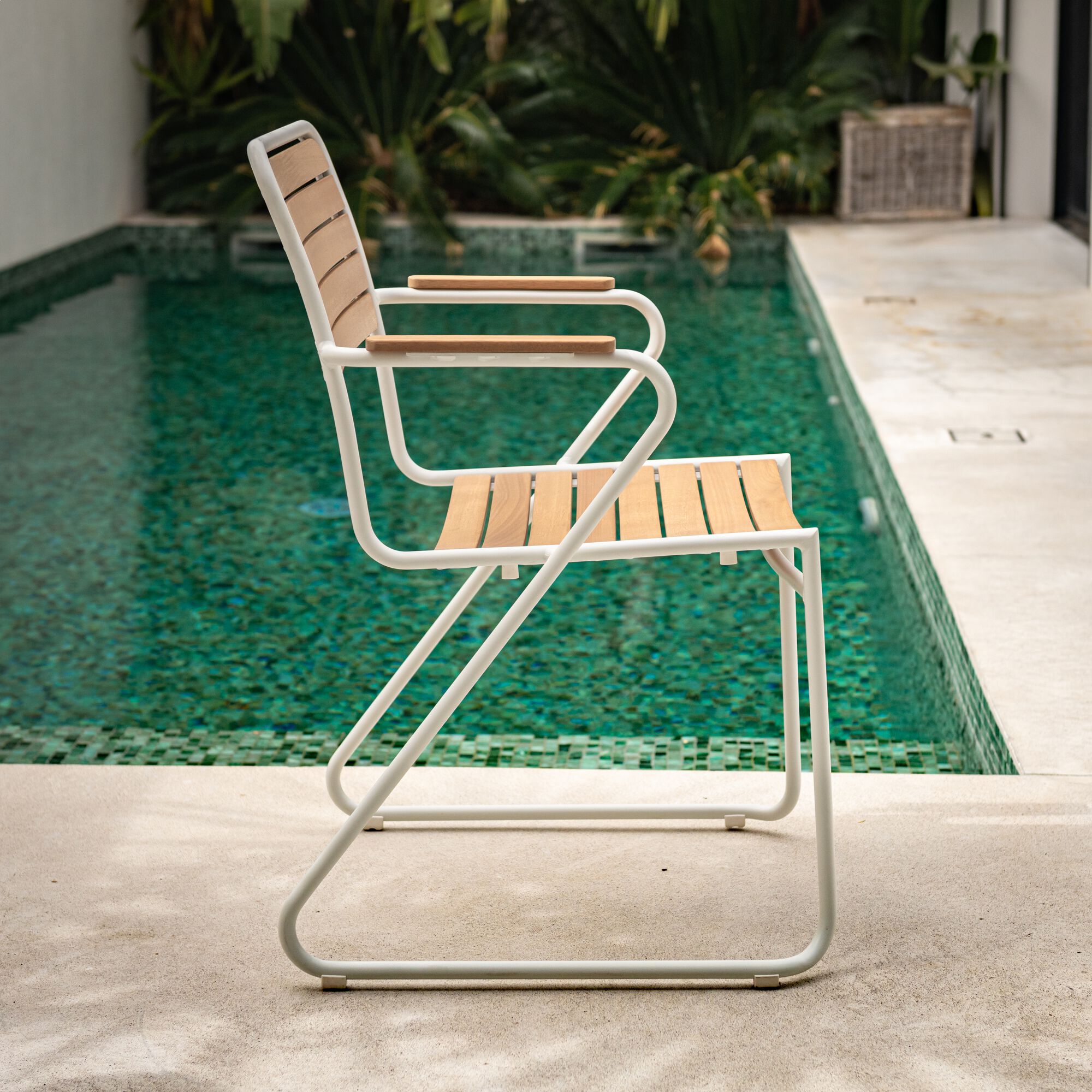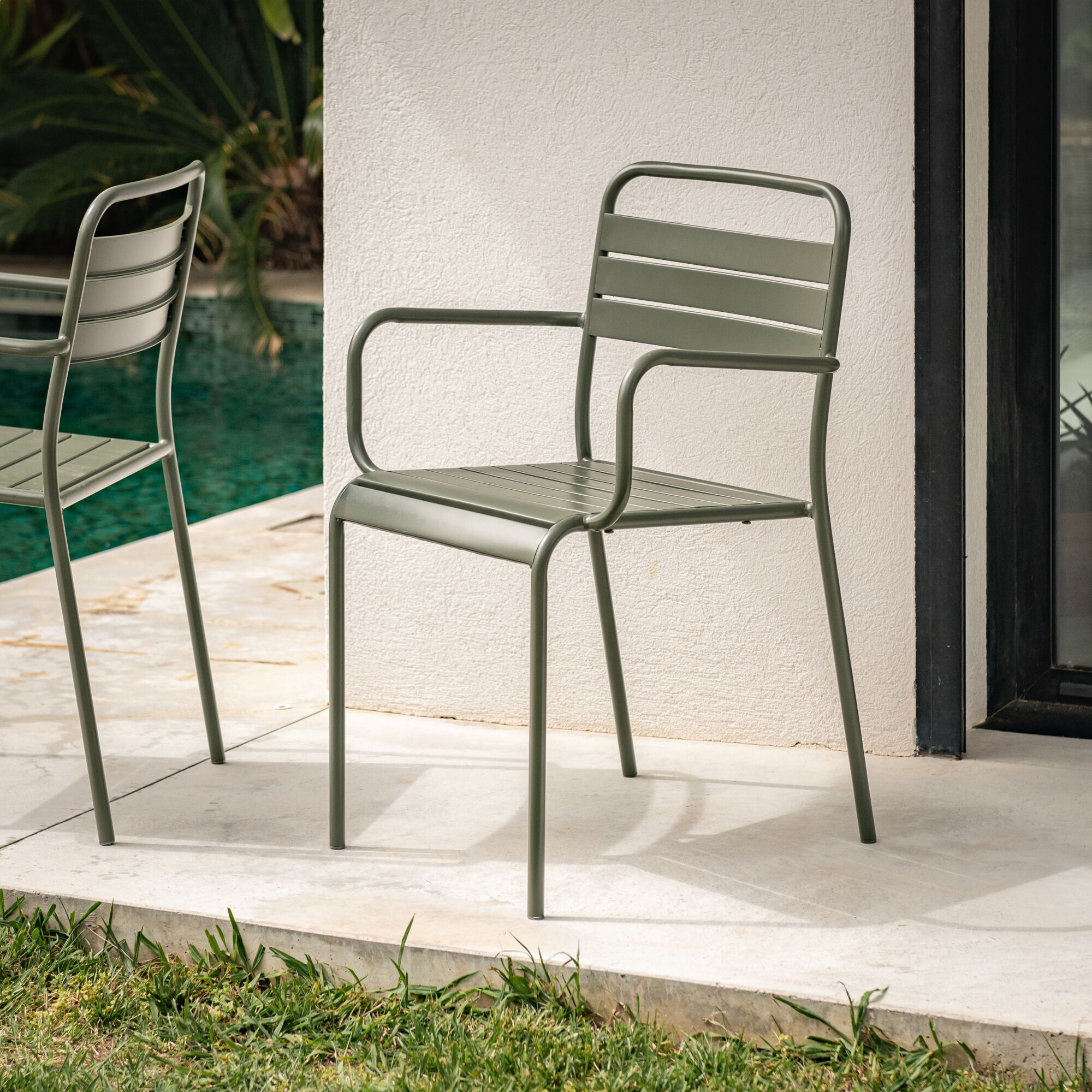 SOURIS - Chaise de jardin avec accoudoirs en acier - vert cèdre