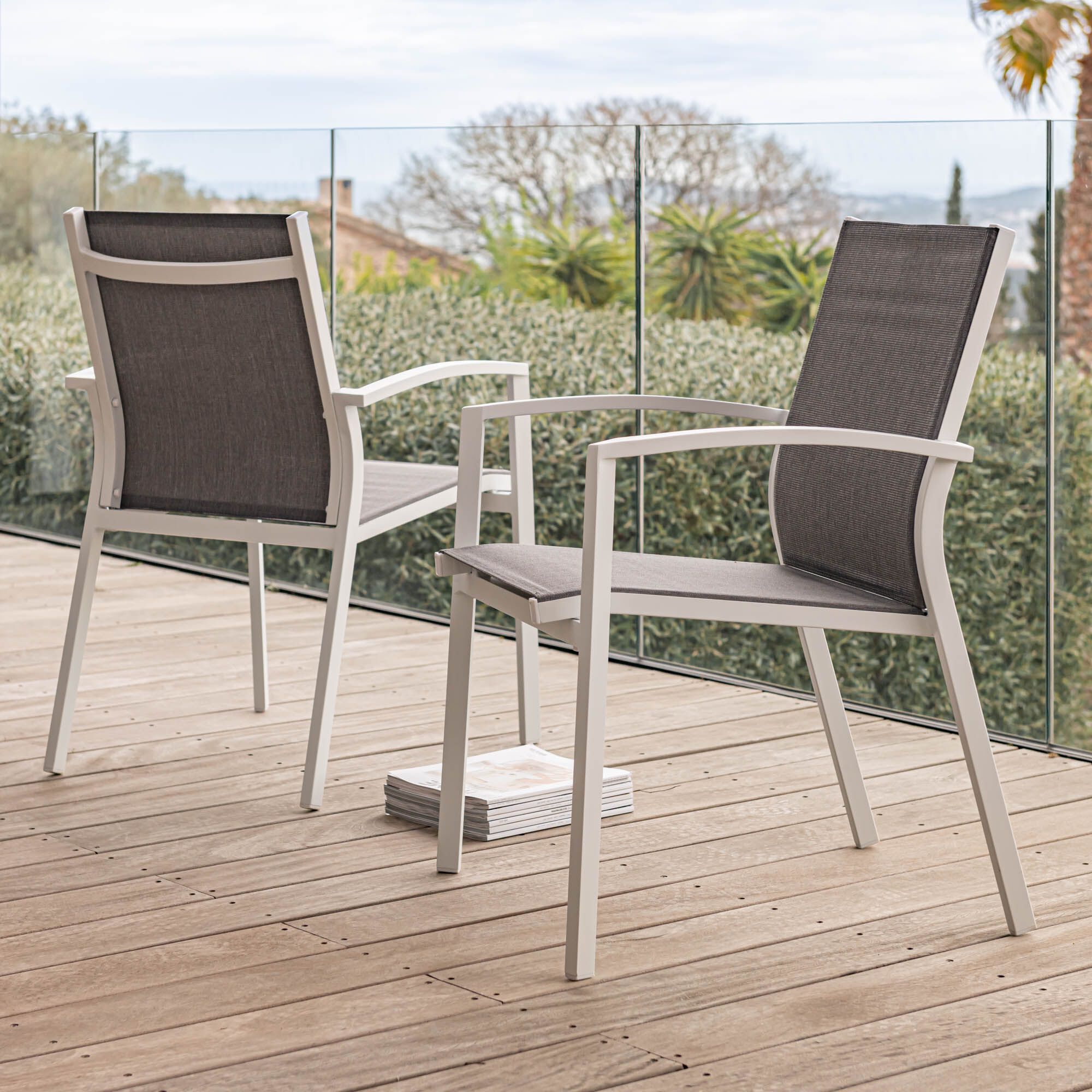 LANCIANO - Chaise de jardin avec accoudoirs en aluminium - gris