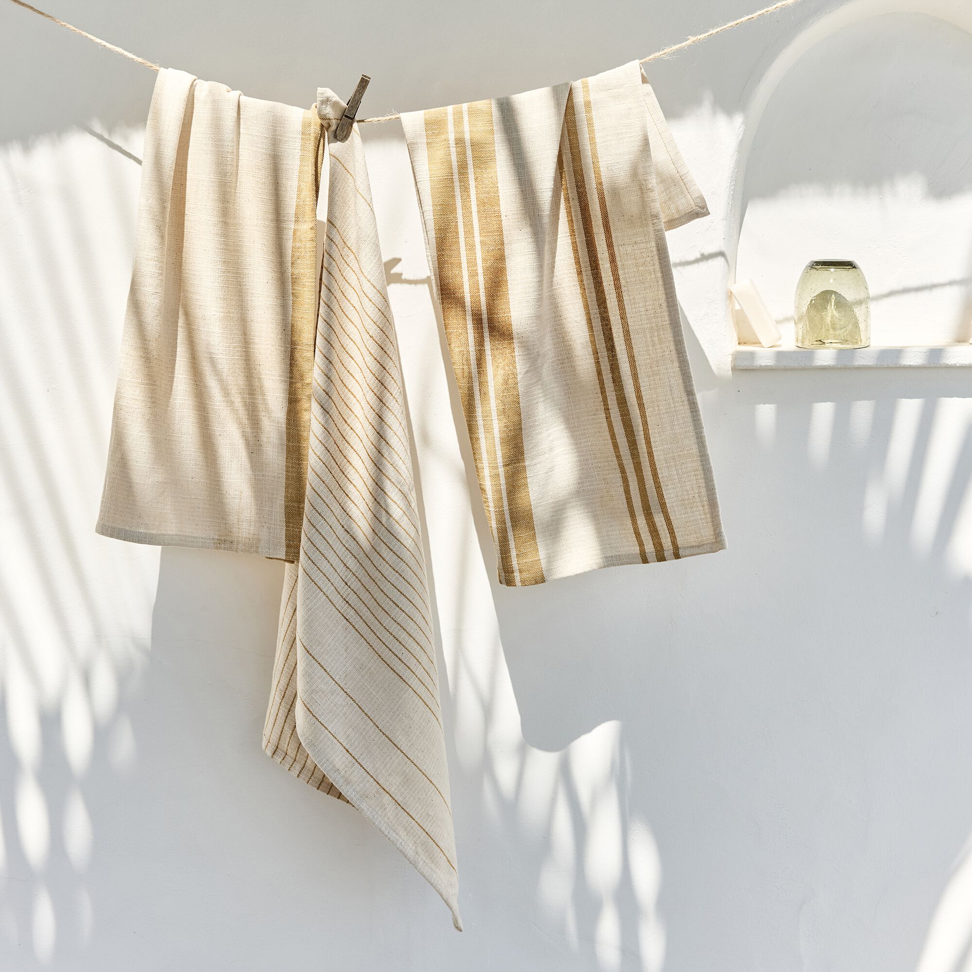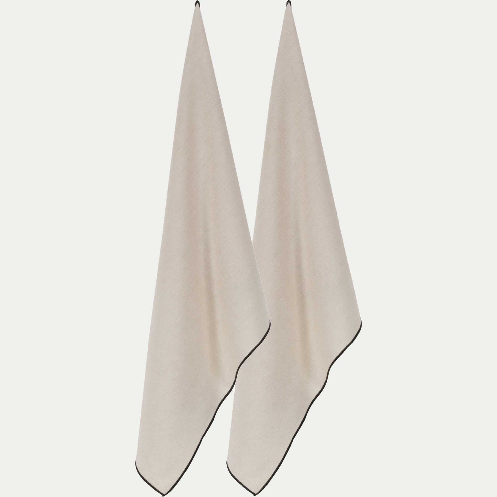 SANTIN - Lot de 3 torchons en coton beige et bleu