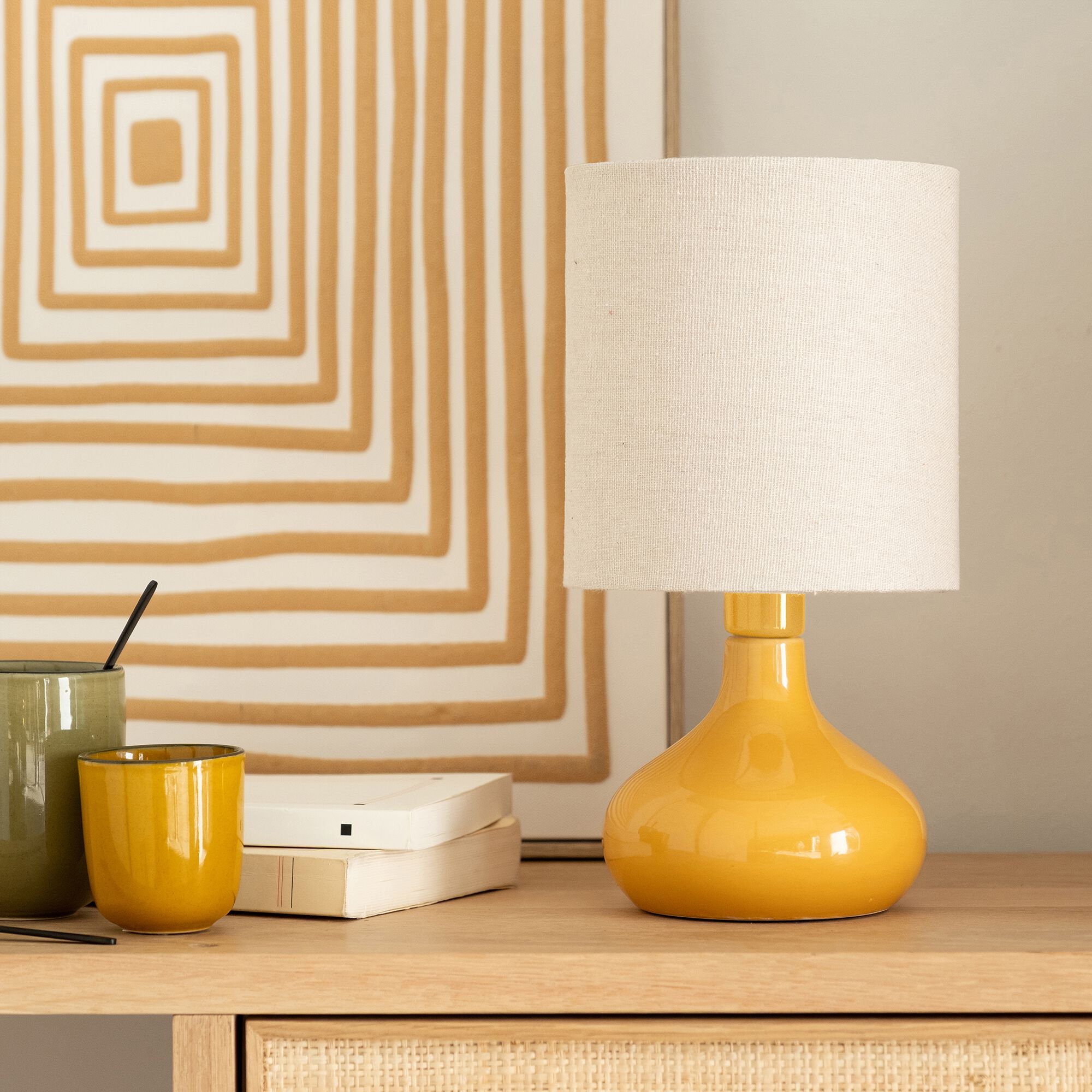 ELLICA - Lampe à poser en bois et coton H43cm E14