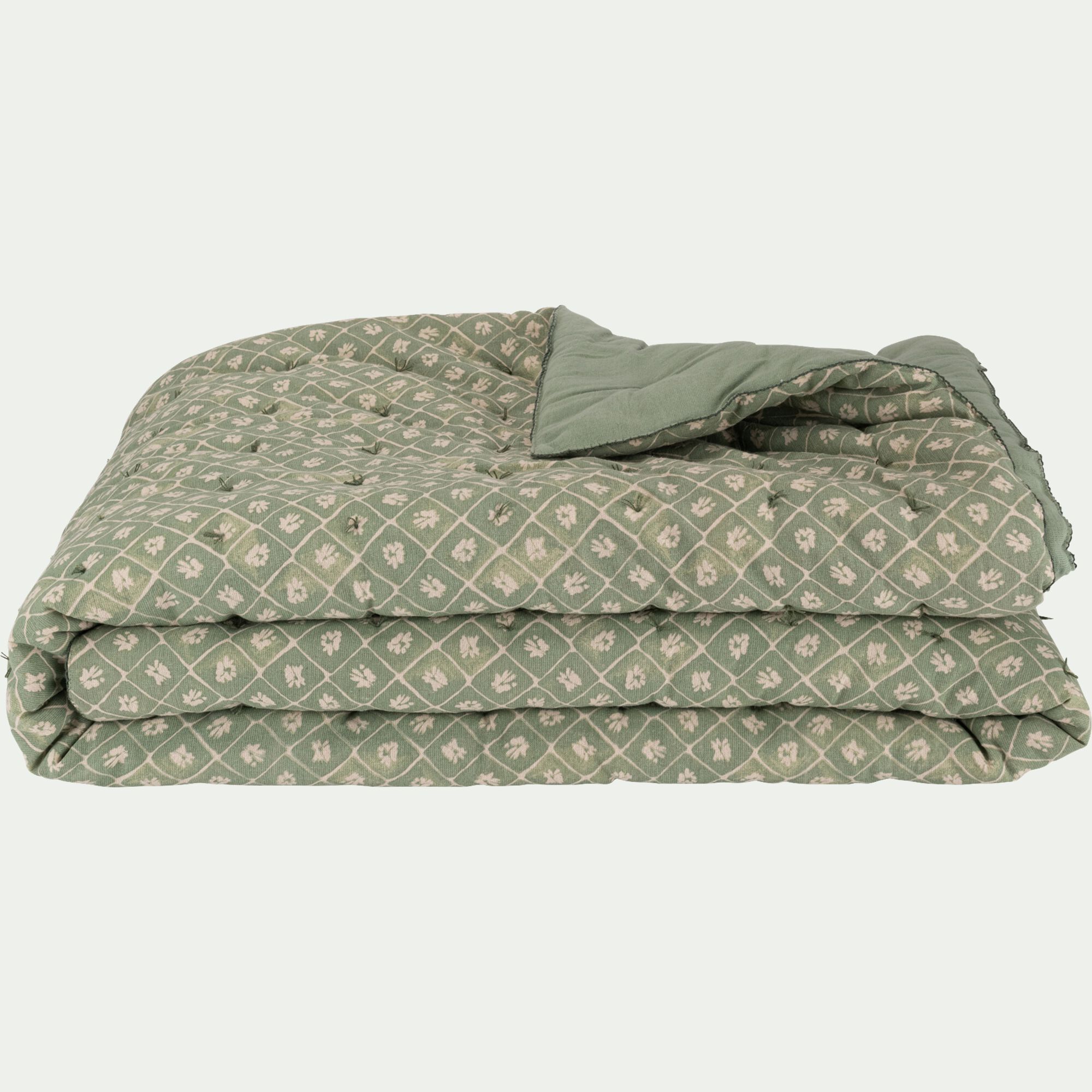 PIASTRE - Couvre lit finition croquet en coton 220x240cm - vert
