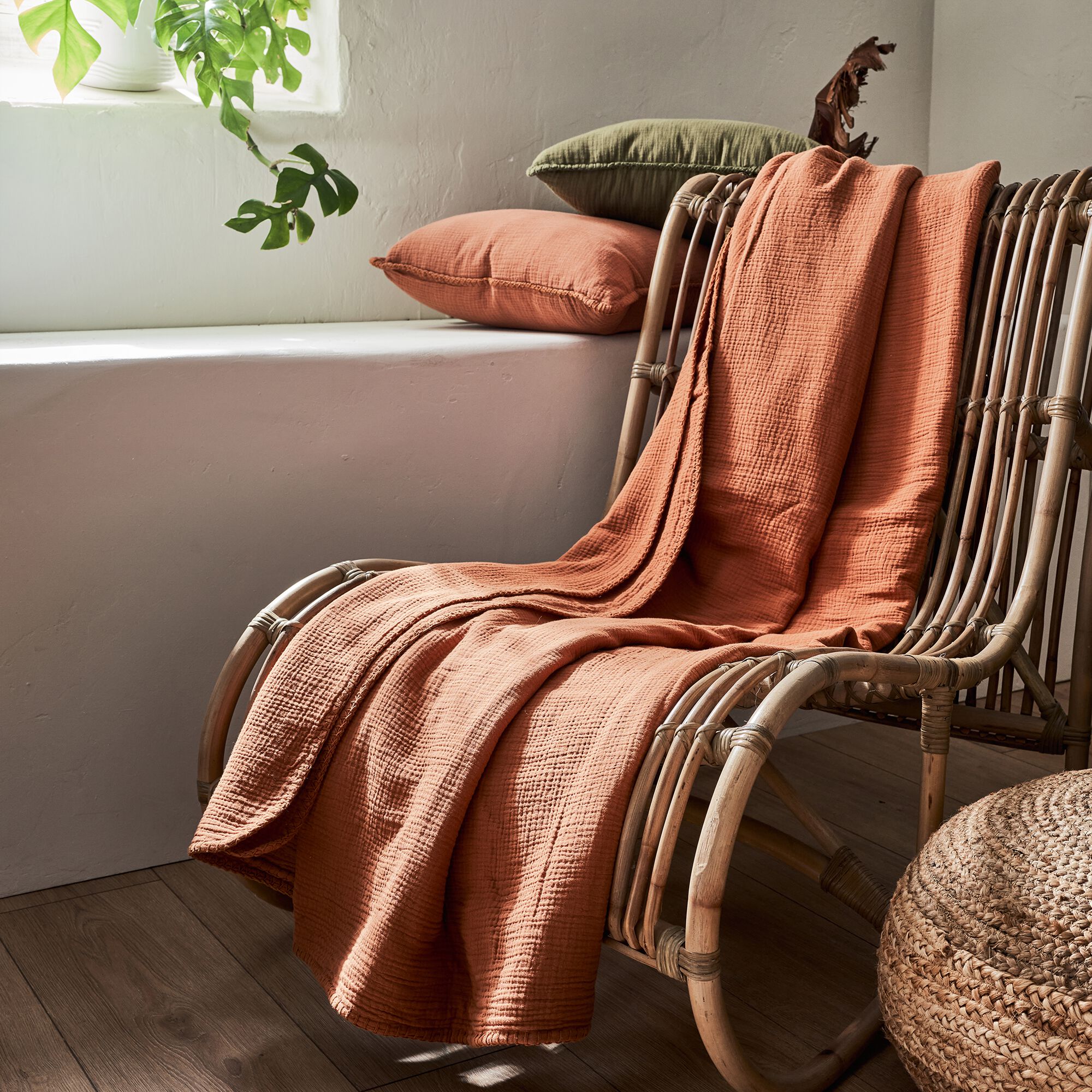 TESSALY - Couvre-lit en gaze de coton 180x230cm - brun rustrel