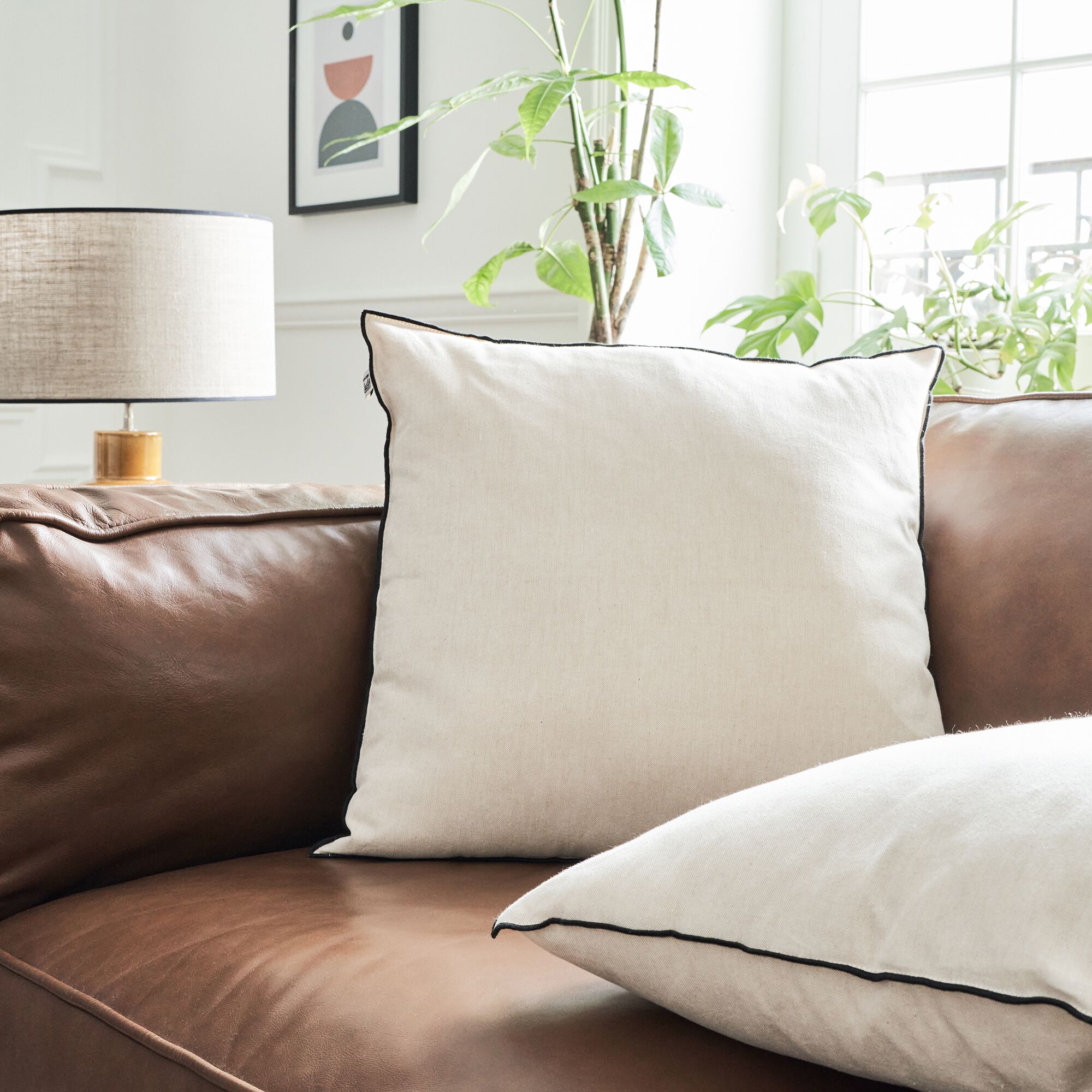 BLAISE - Coussin surpiqué en coton 45x45cm - brun noisette
