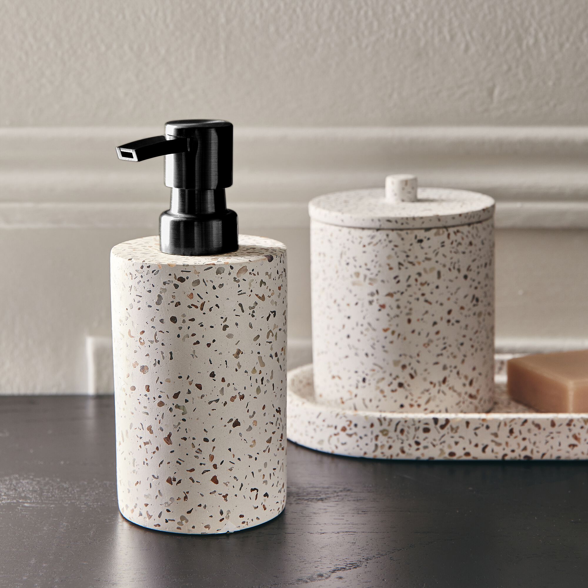 TERRAIO - Distributeur de savon en terrazzo H17,5cm - blanc