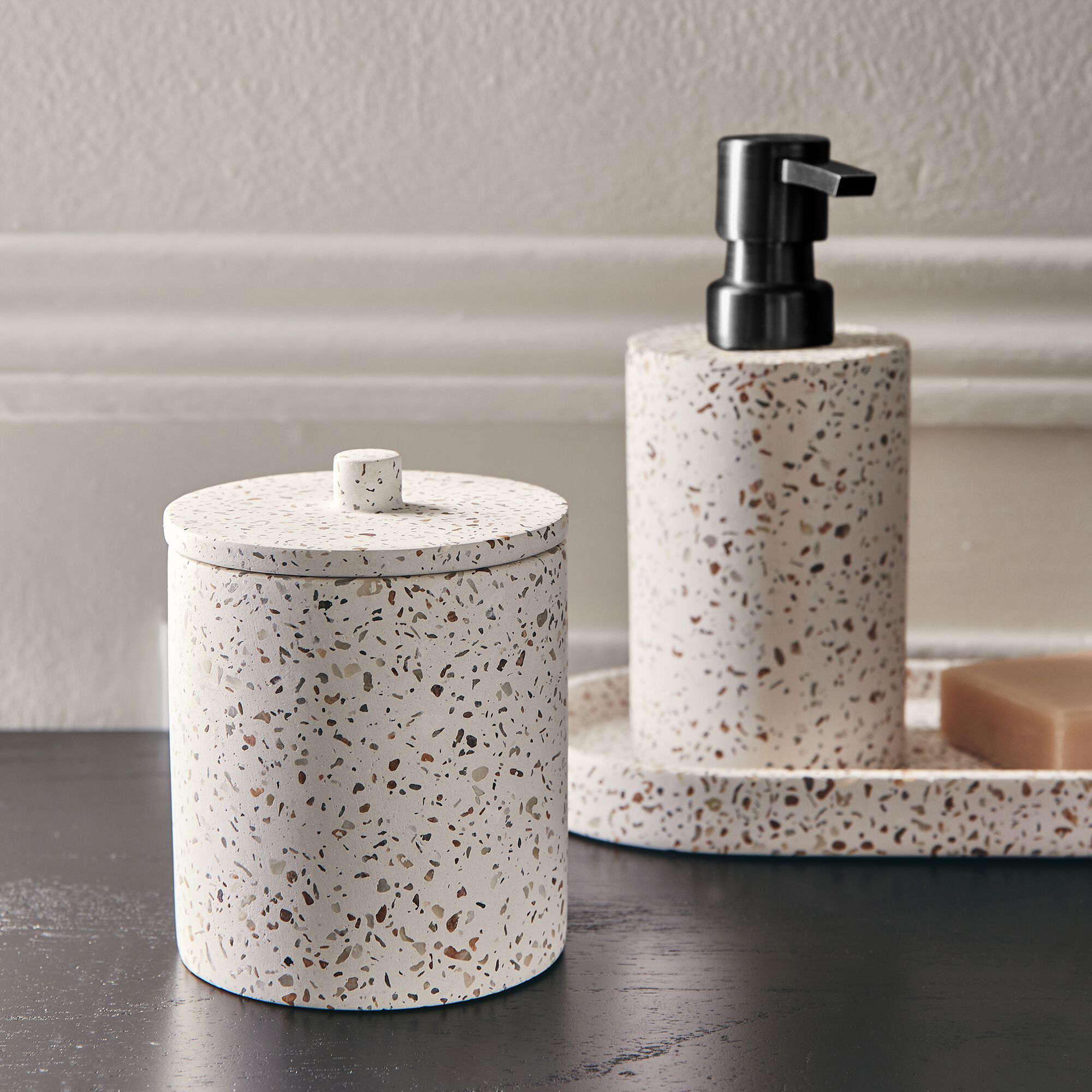 TERRAIO - Pot à coton en terrazzo H12,5cm - blanc