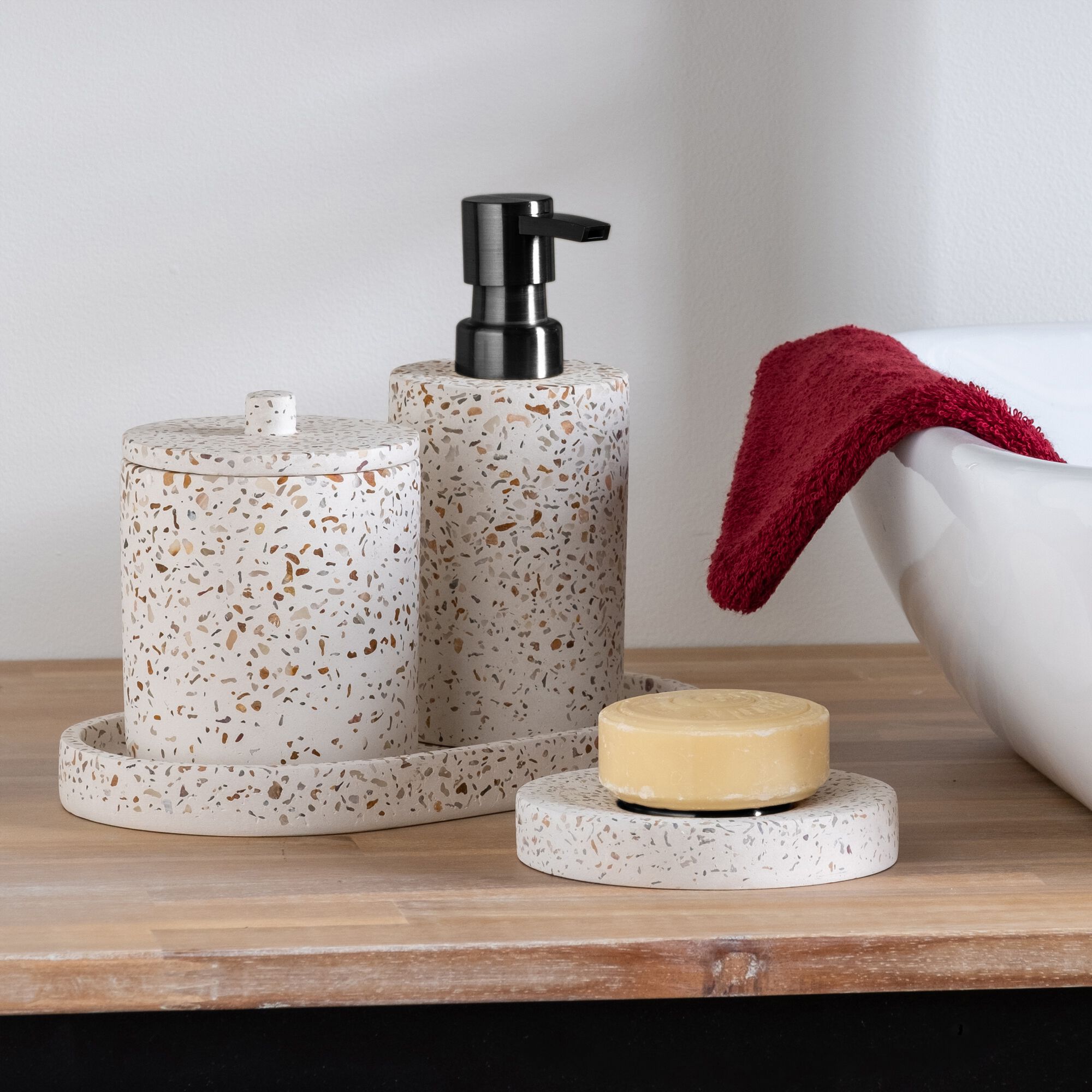 TERRAIO - Porte-savon en terrazzo D11cm - blanc
