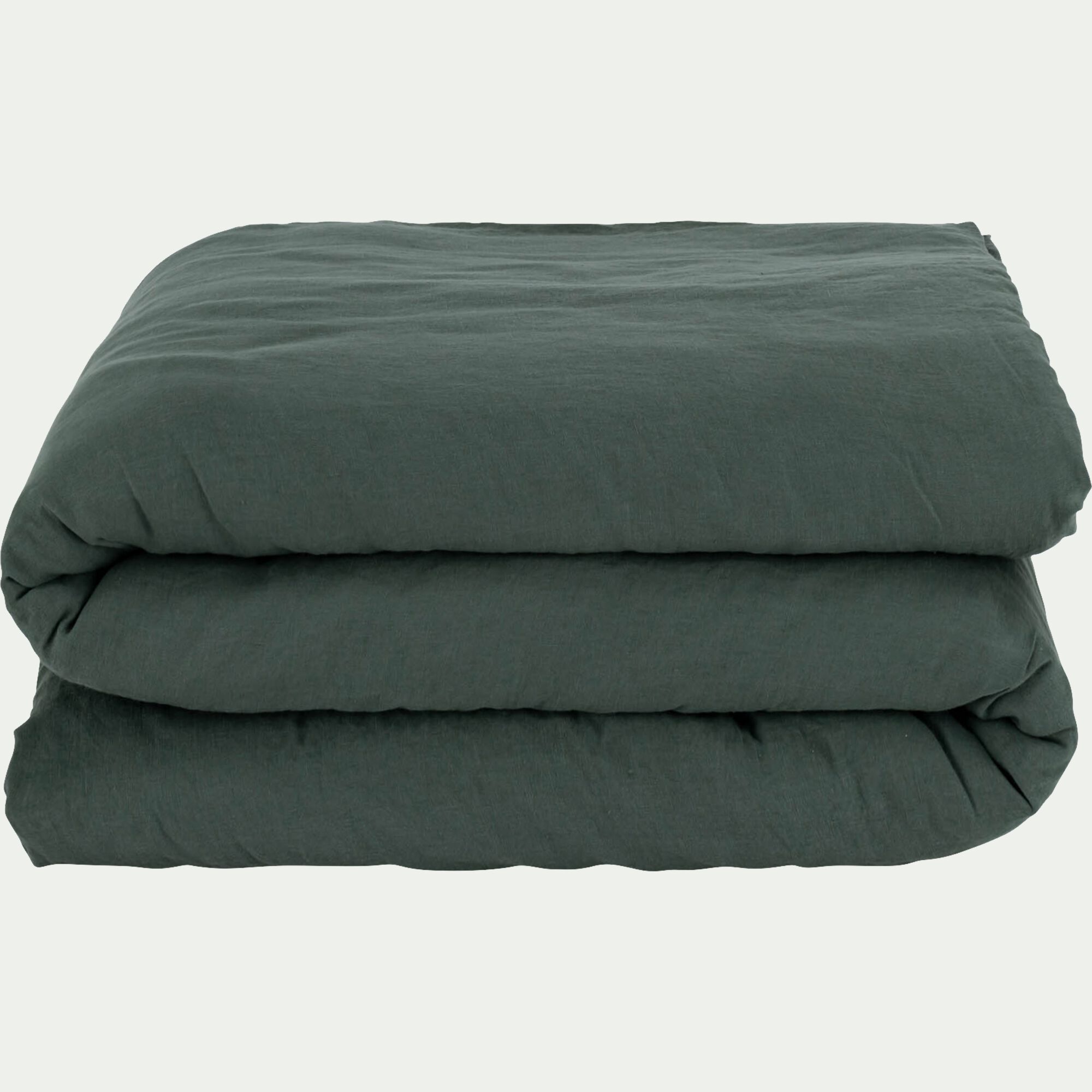 VENCE - Linge de lit uni en lin lavé - vert cèdre
