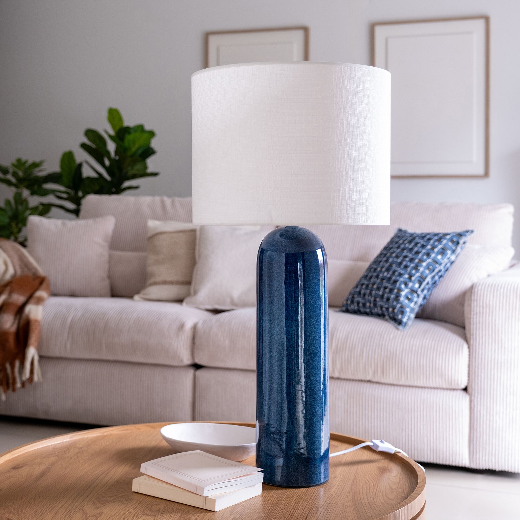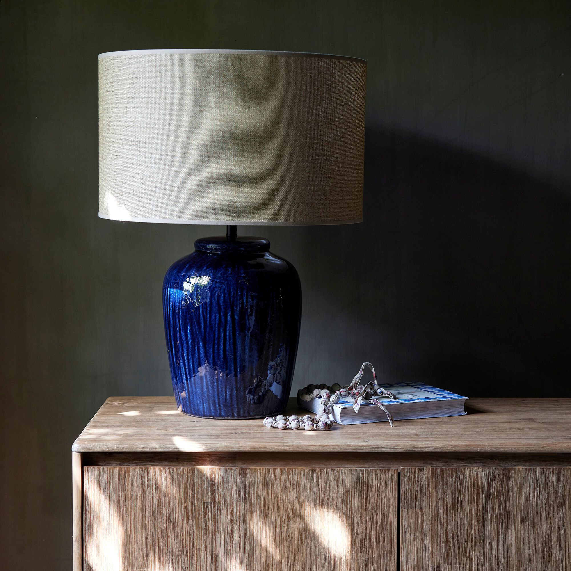 HELIOS - Lampe à rayures en céramique - bleu et blanc
