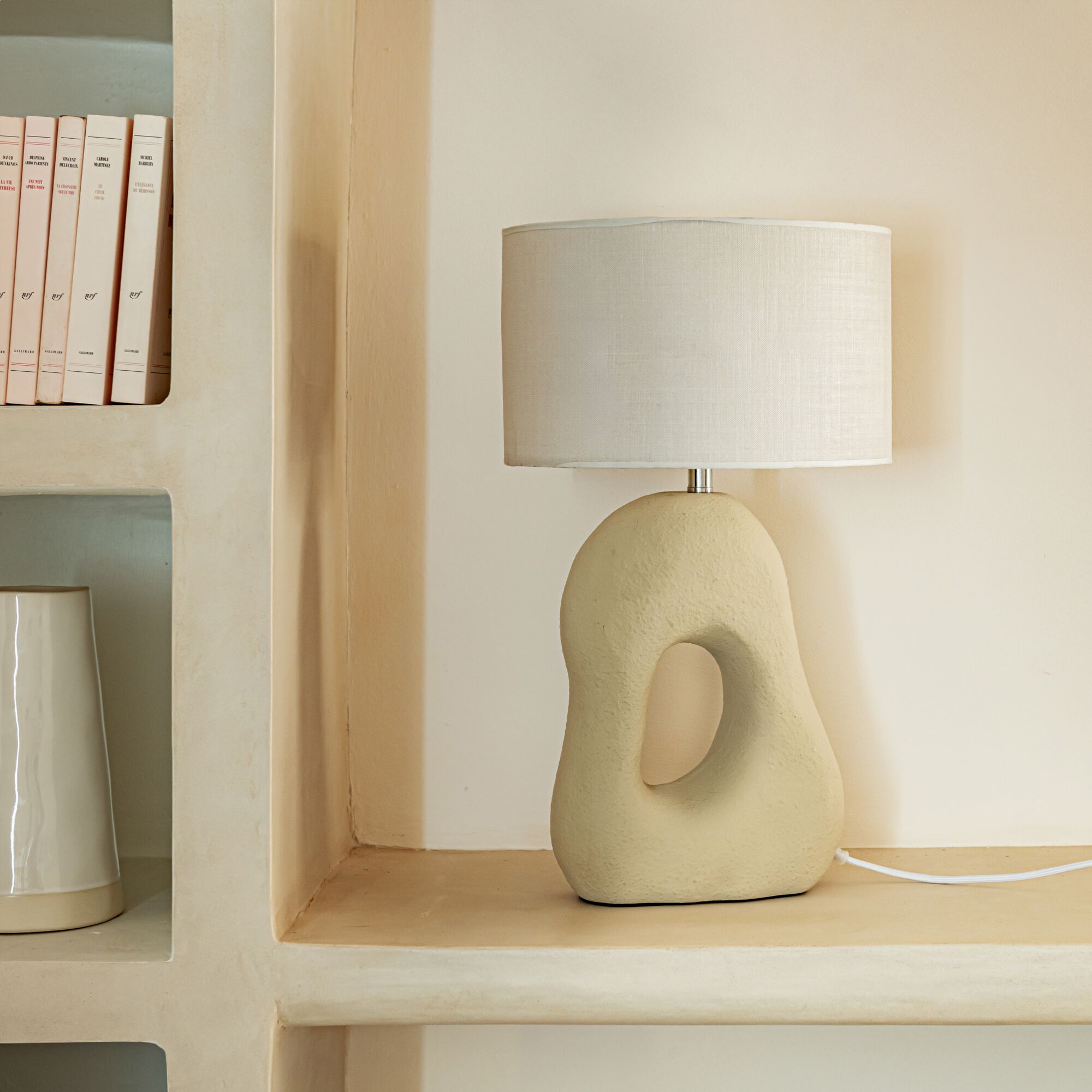 NINO - Pied de lampe électrifié en grès H40,5cm - beige