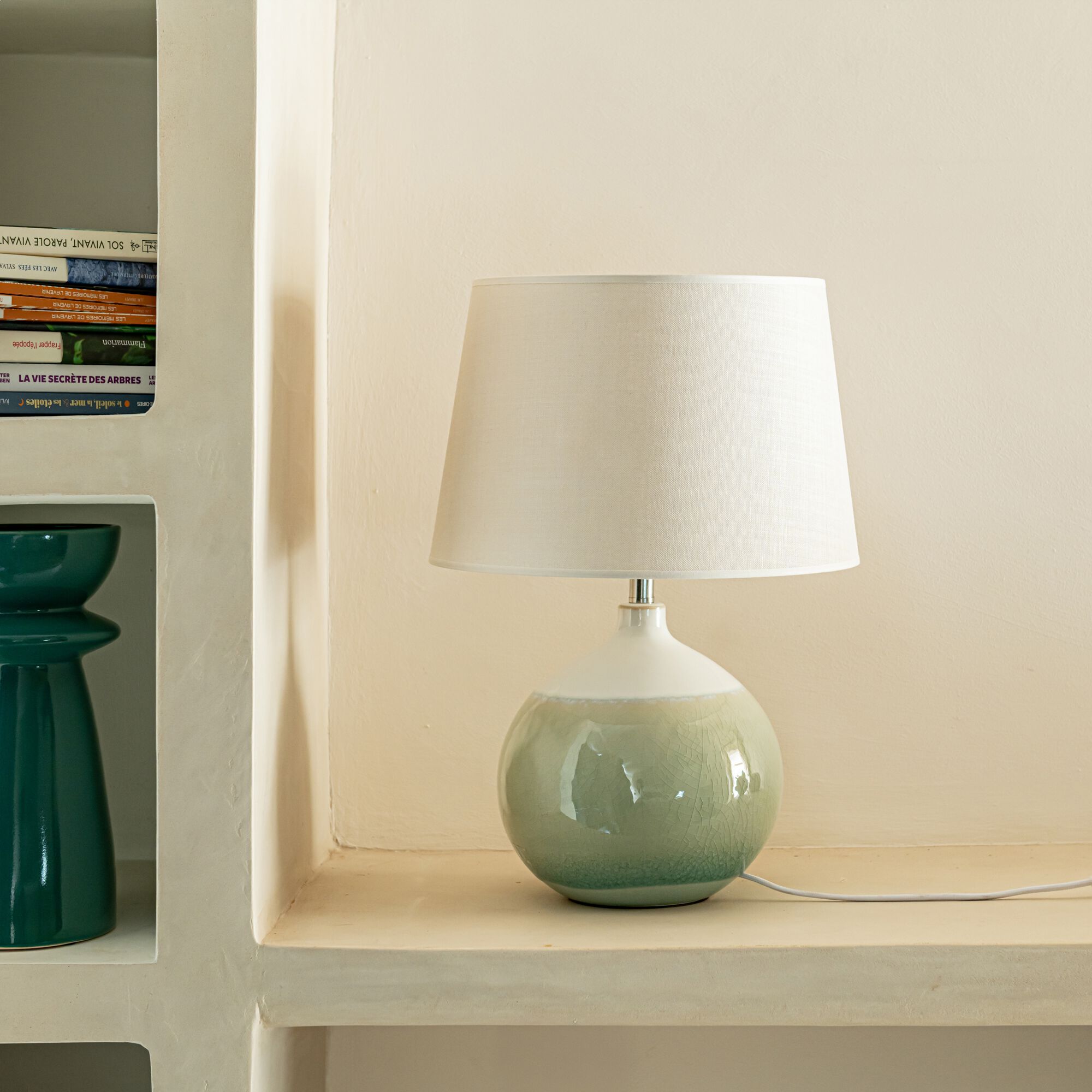 COLAS - Pied de lampe électrifé D14,5cm en grès - vert