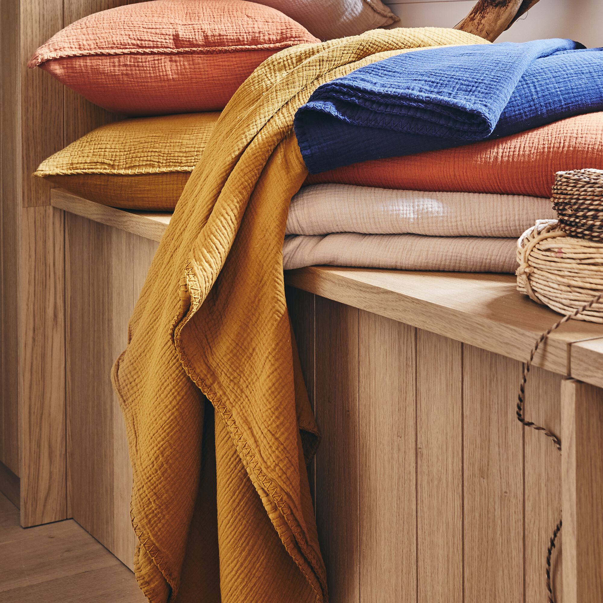 TESSALY - Plaid en gaze de coton - jaune alep 130x170cm