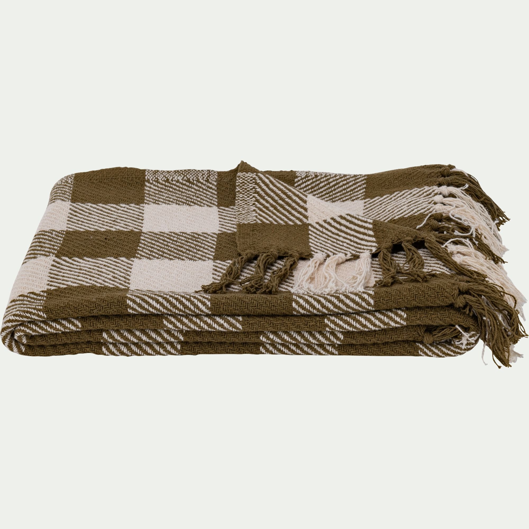MISON - Plaid tartan en coton 130x170cm - vert mousse