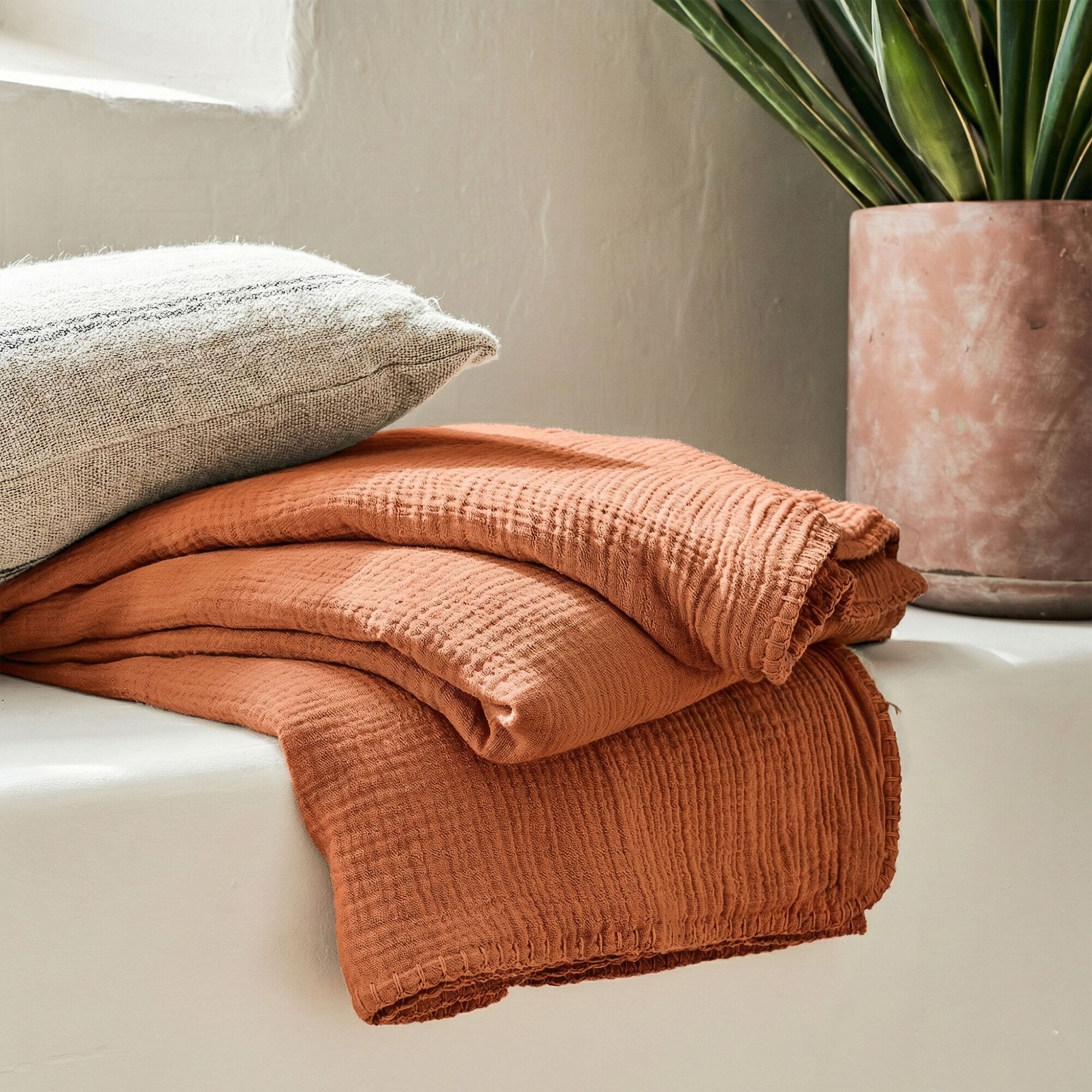TESSALY - Plaid en gaze de coton - brun rustrel 130x170cm
