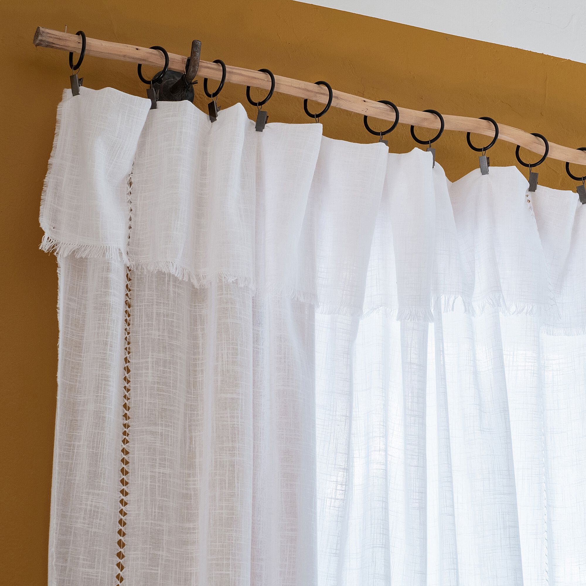 Medine - Rideau à œillets en coton brodé 140x250cm - blanc