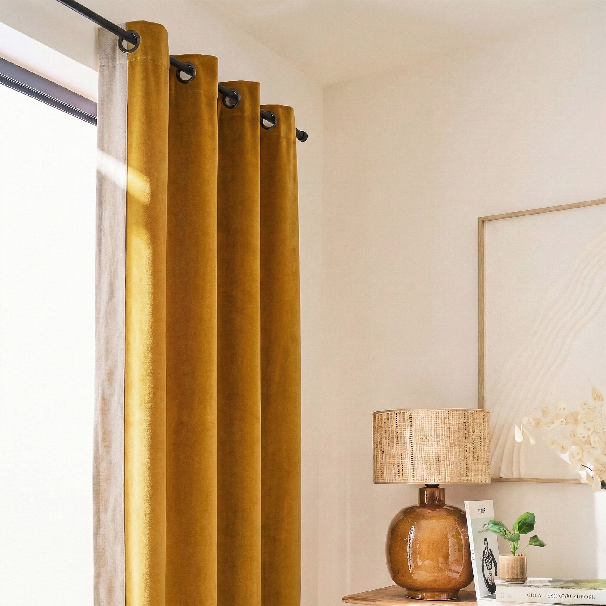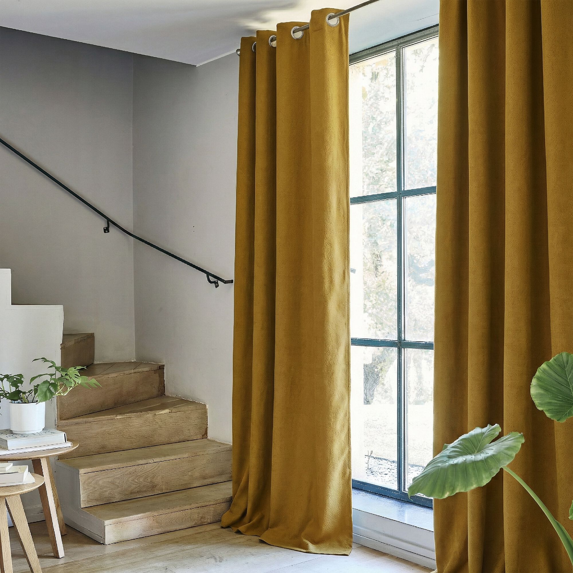 IRENE - Rideau à œillets en velours 135x250cm -jaune alep
