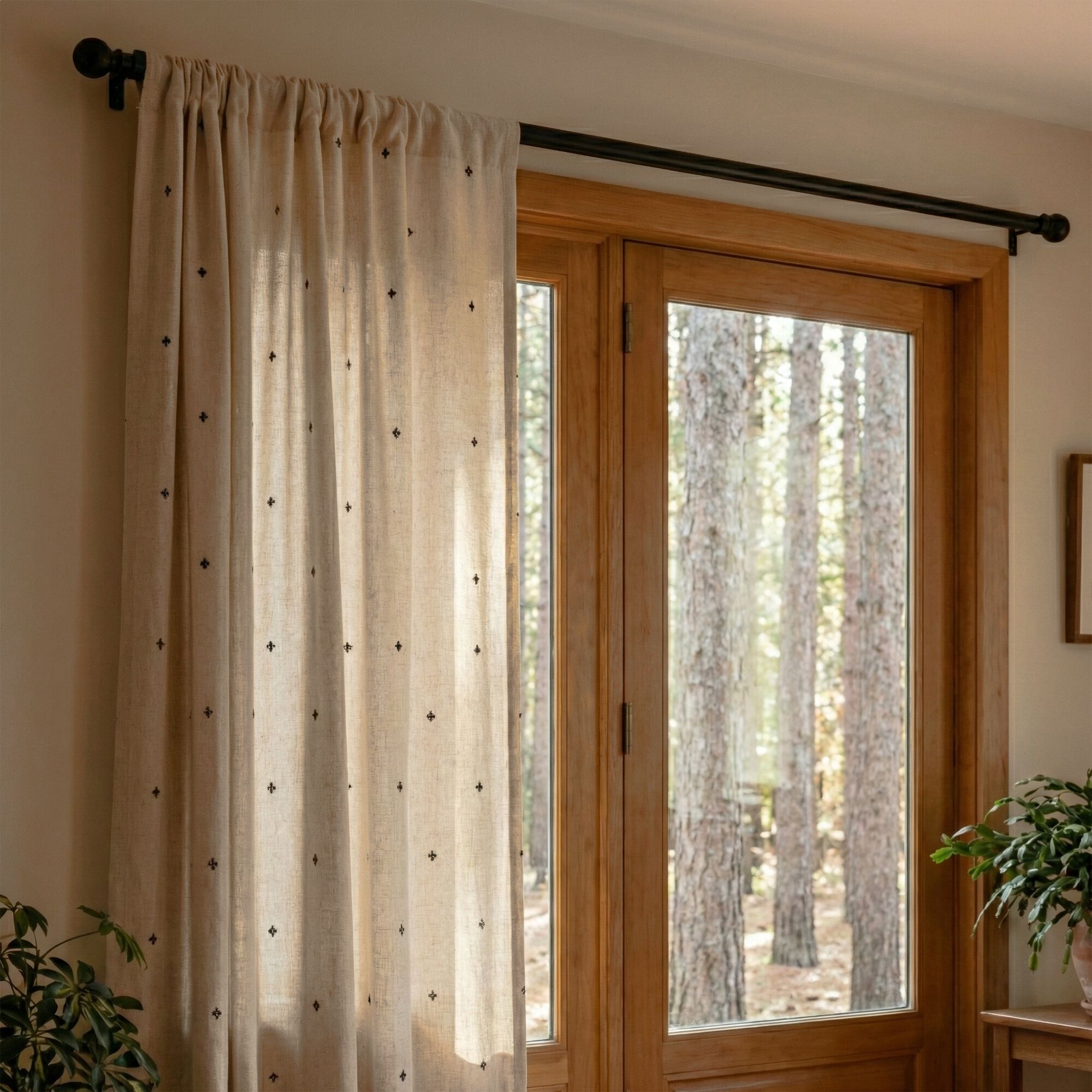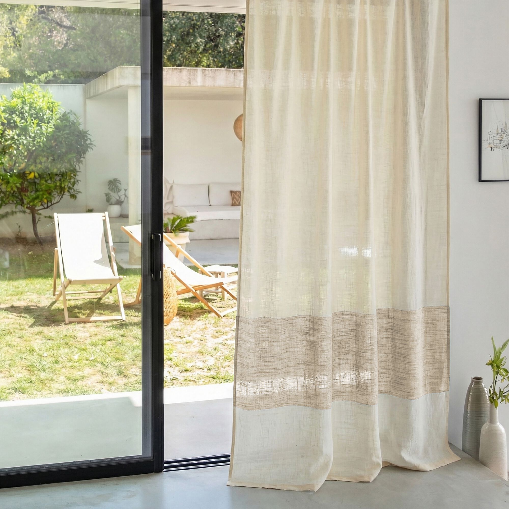 SENNA - Rideau à motif brodé en coton 140x250cm - beige