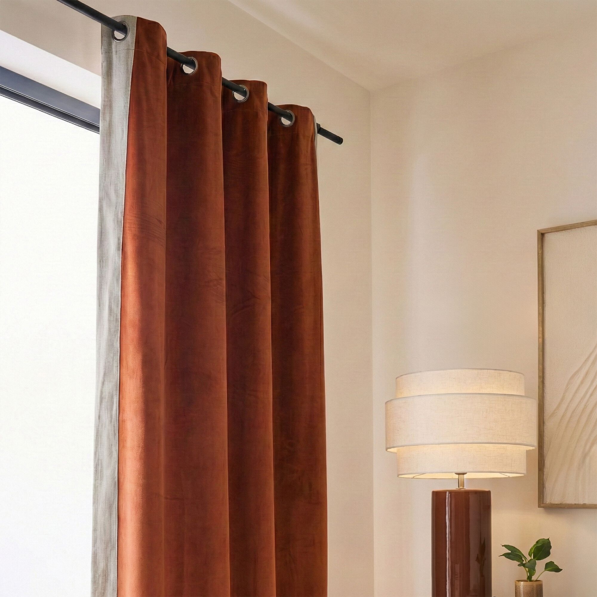 IRENE - Rideau à œillets en velours 135x250cm - brun rustrel
