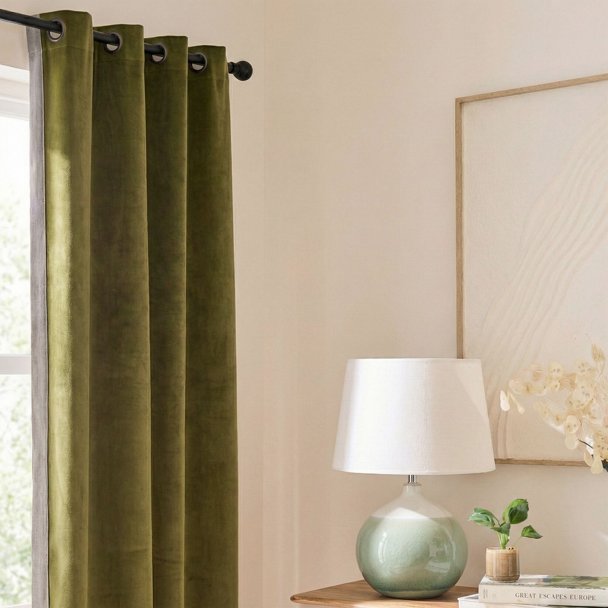 IRENE - Rideau à œillets en velours 135x250cm -vert cèdre