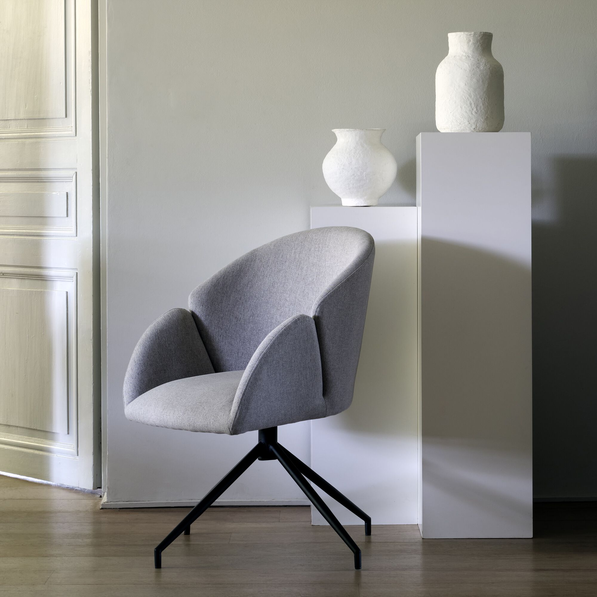 CAMARGUE - Chaise pivotante avec accoudoirs en tissu - gris borie