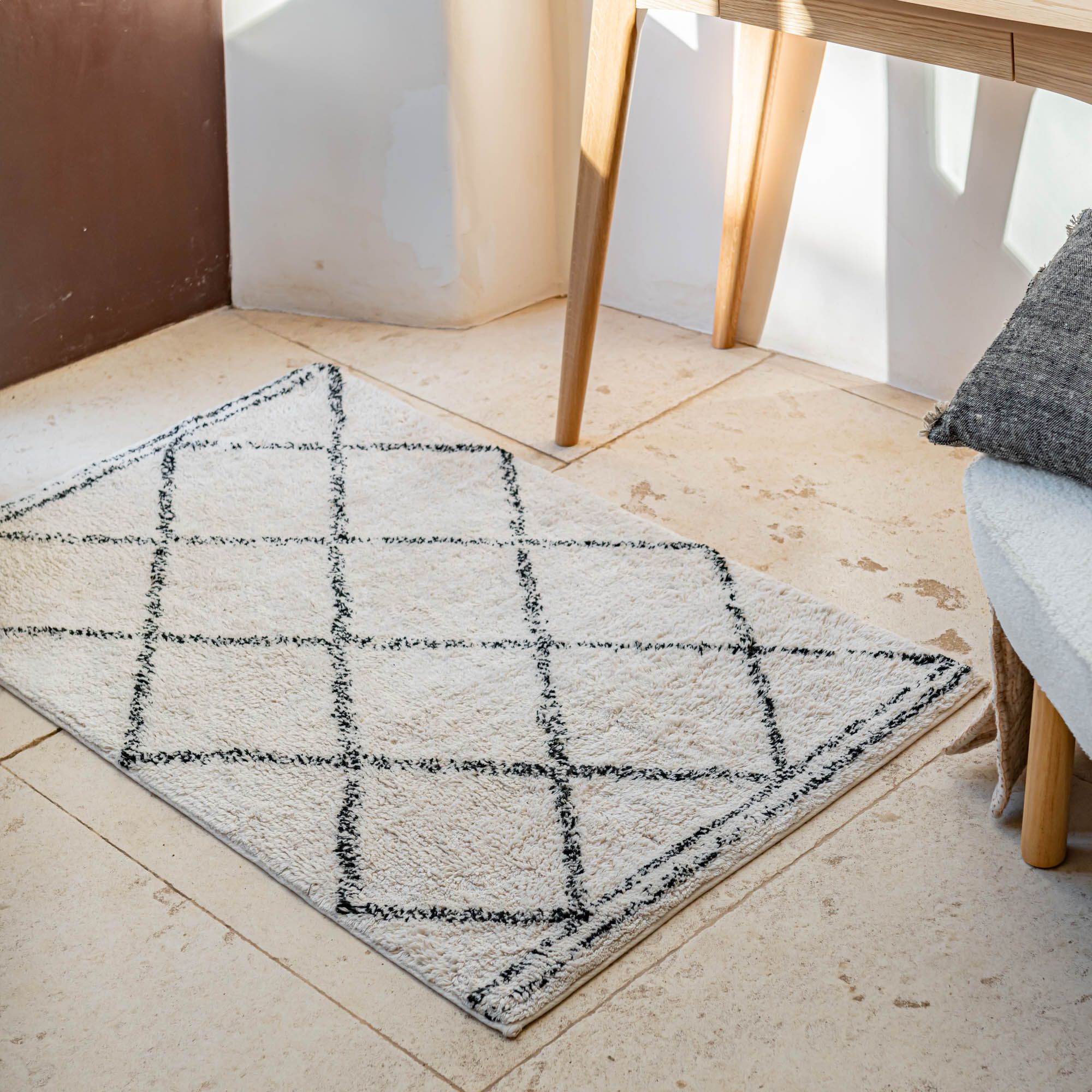 LOSANGE - Tapis inspiration berbère en coton - blanc écru 160x230cm