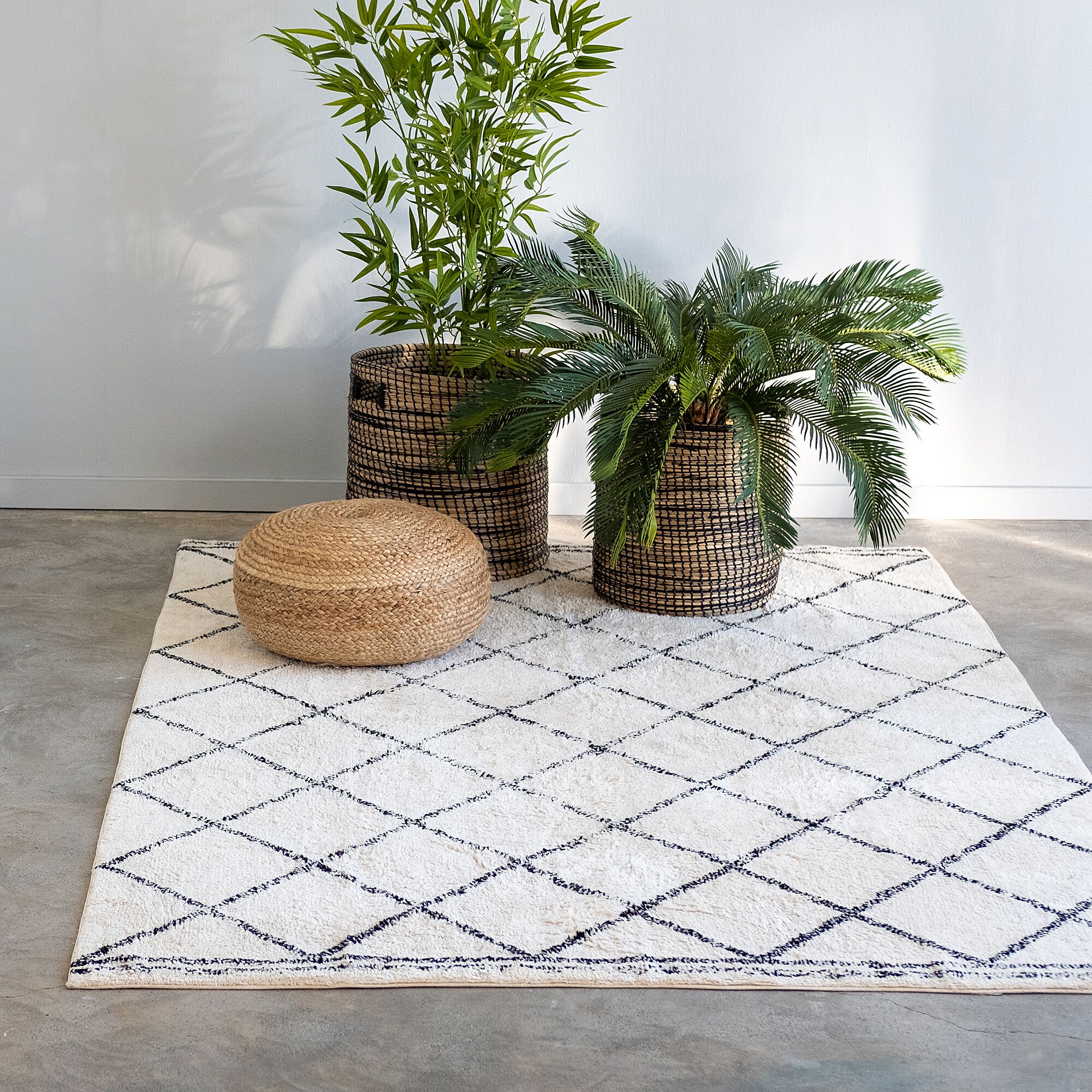 LOSANGE - Tapis inspiration berbère en coton - blanc écru 200x290cm