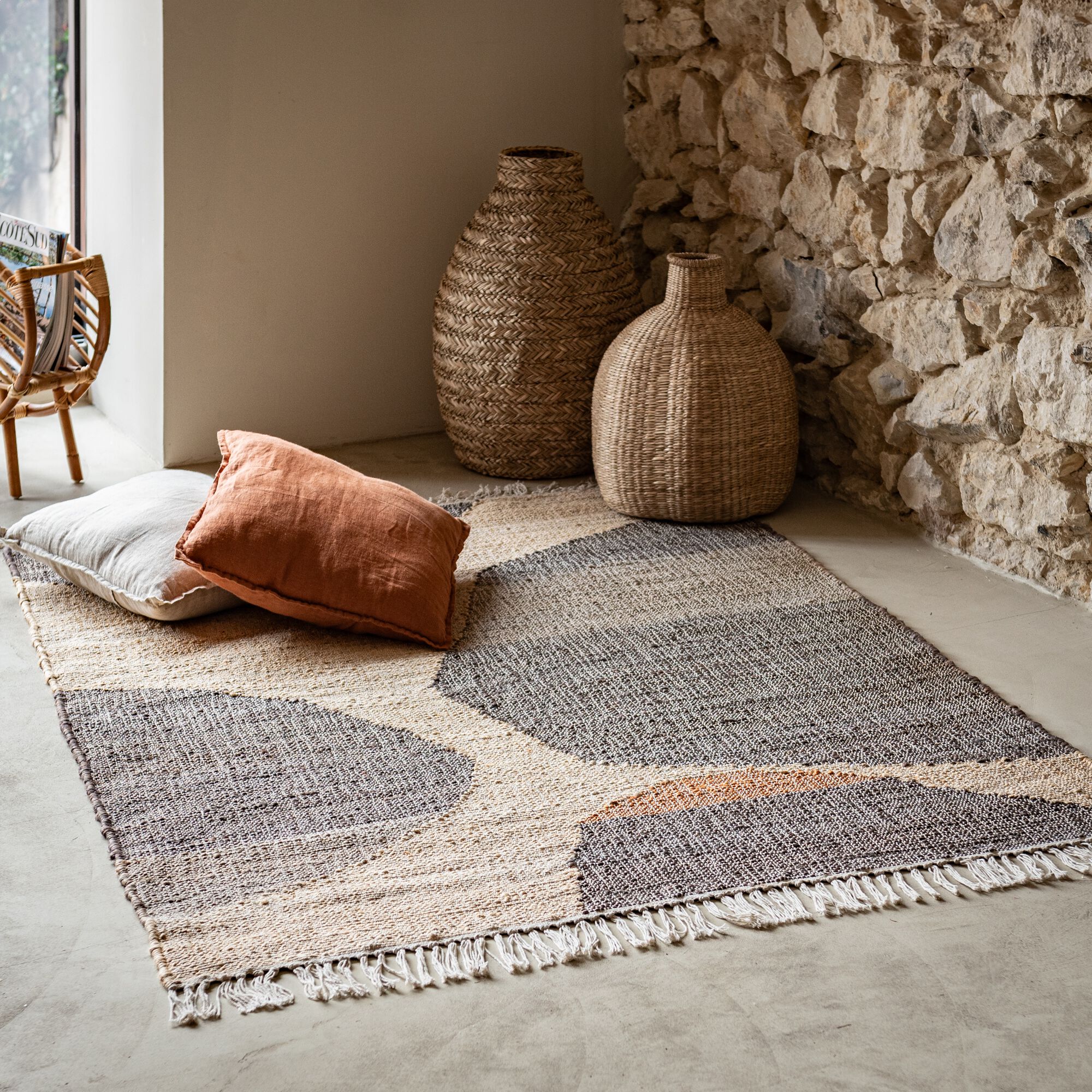 LIETO - Tapis en coton et jute finition franges 200x290 cm - naturel