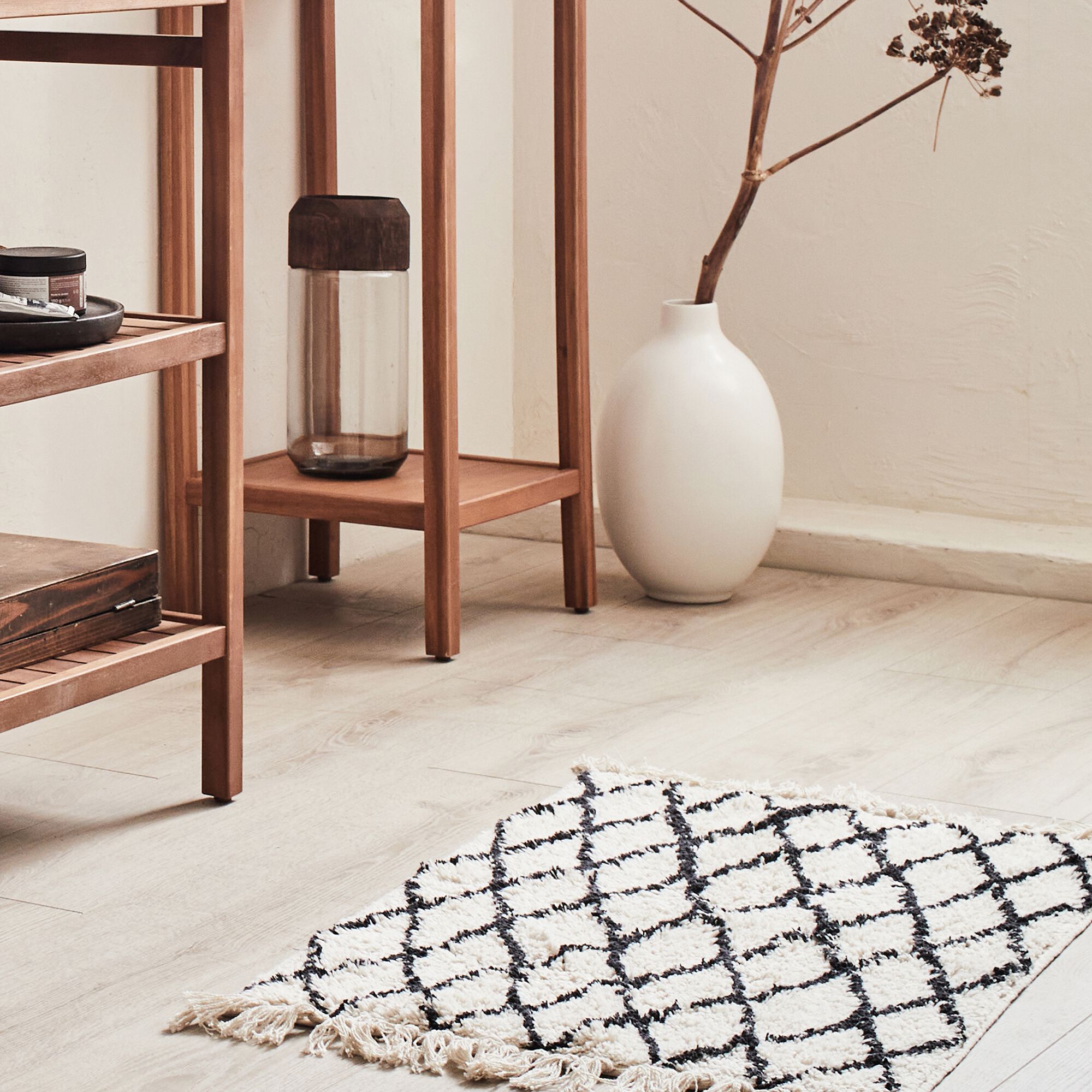 GOHAR - Tapis de bain en coton tufté - blanc et noir 50x80cm