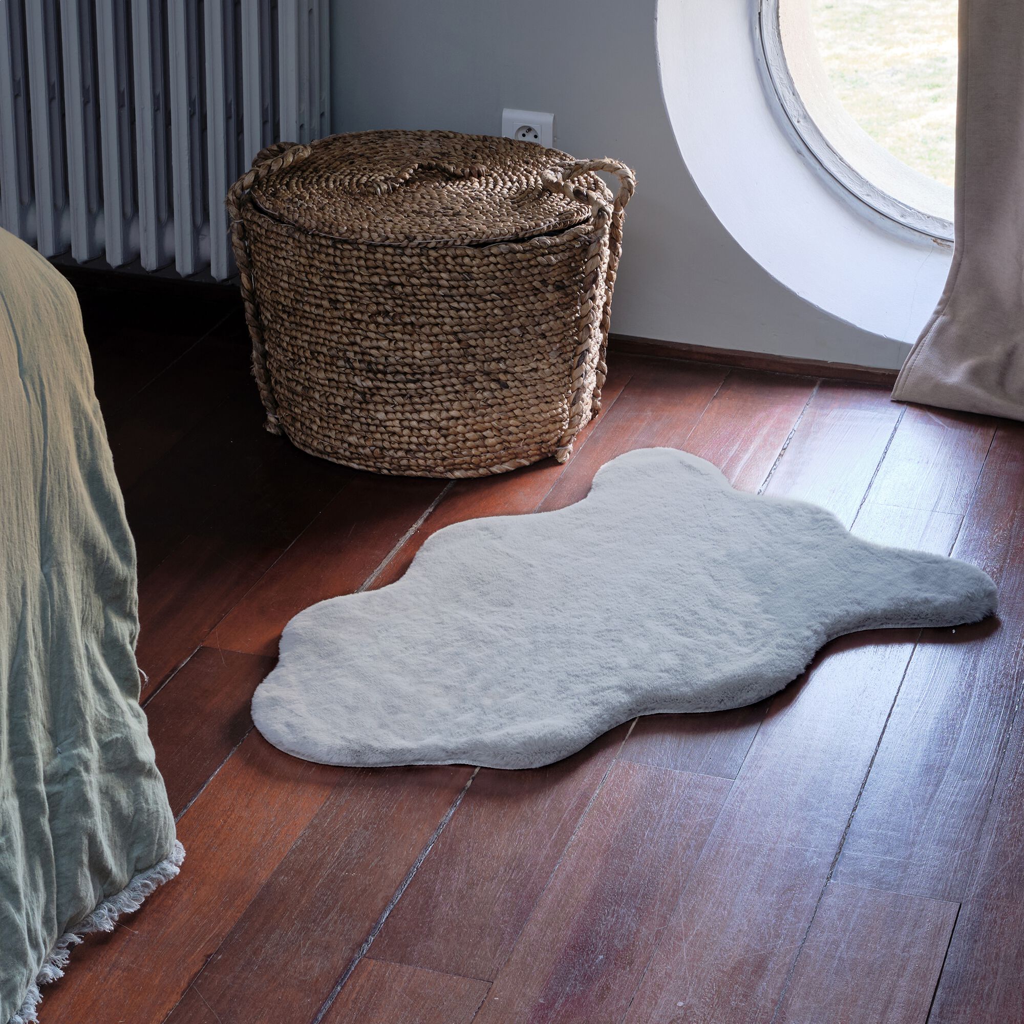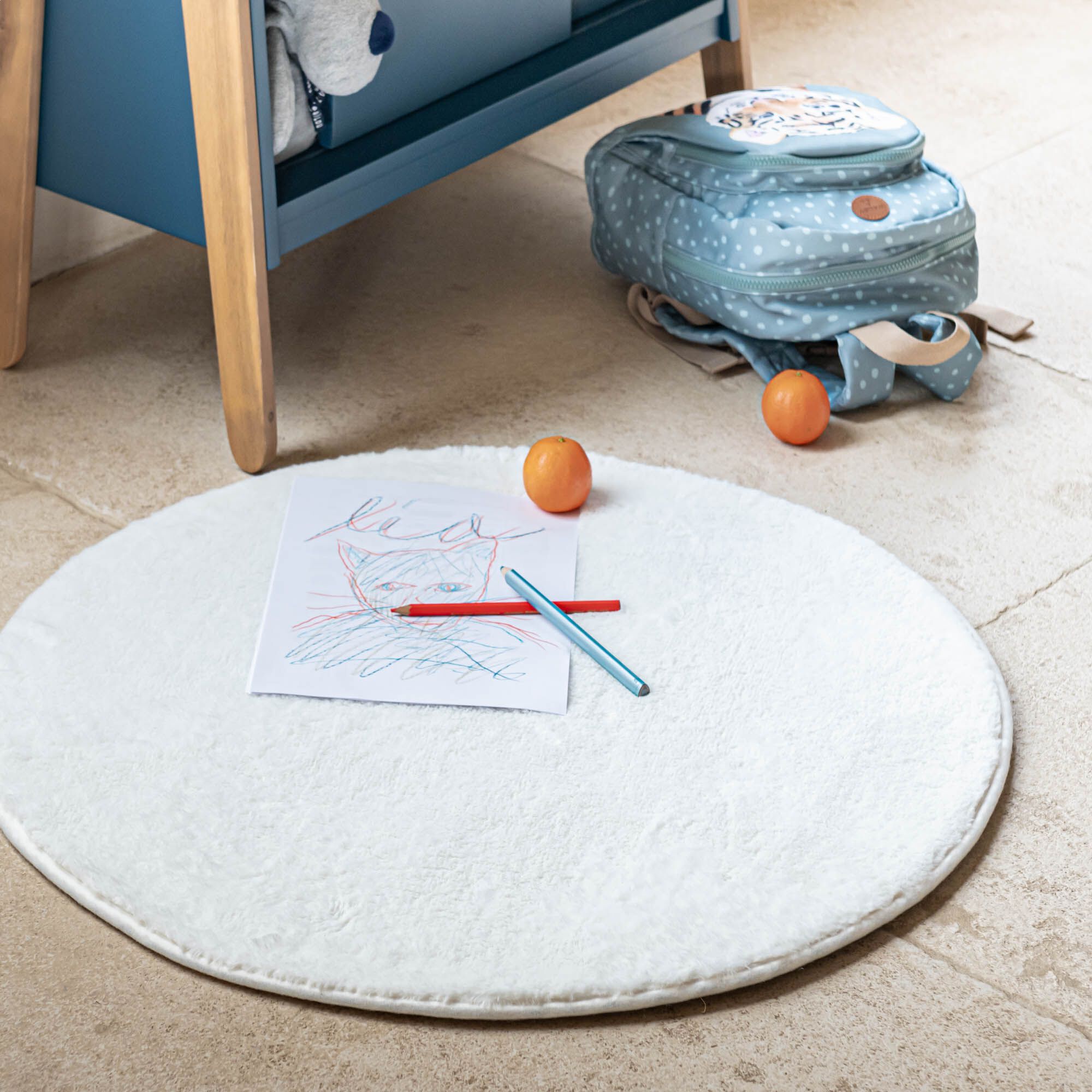 ROBIN - Tapis rond imitation fourrure - blanc ventoux D70cm