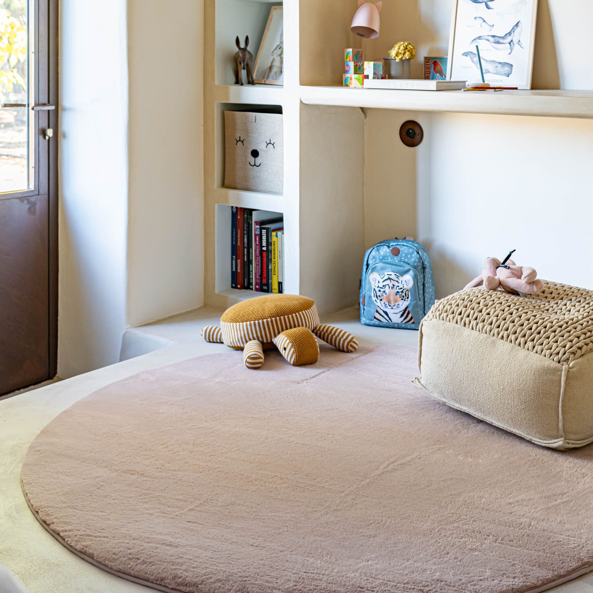 ROBIN - Tapis rond imitation fourrure - rose argile D150cm