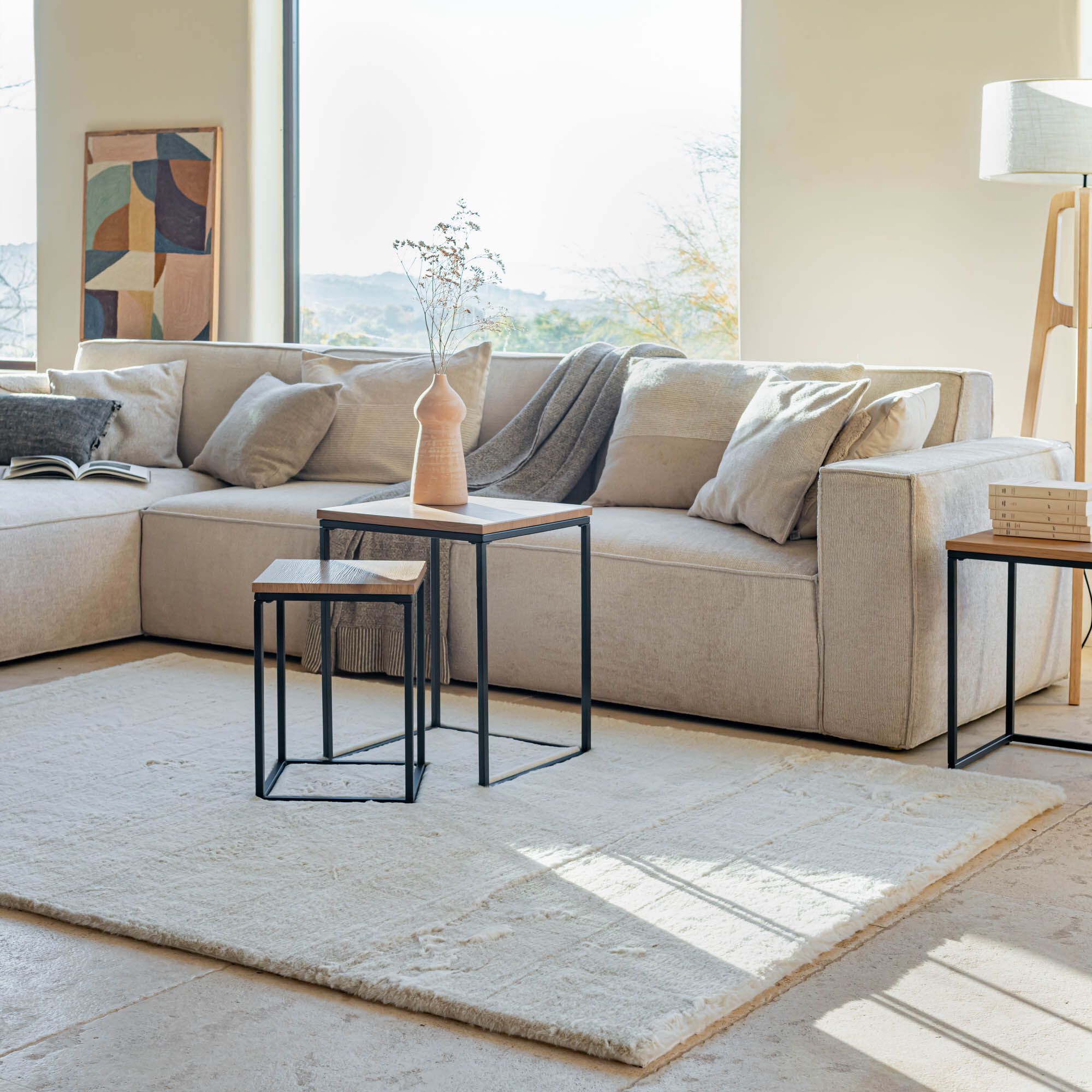MAUD - Tapis shaggy à motifs 160x230cm - beige