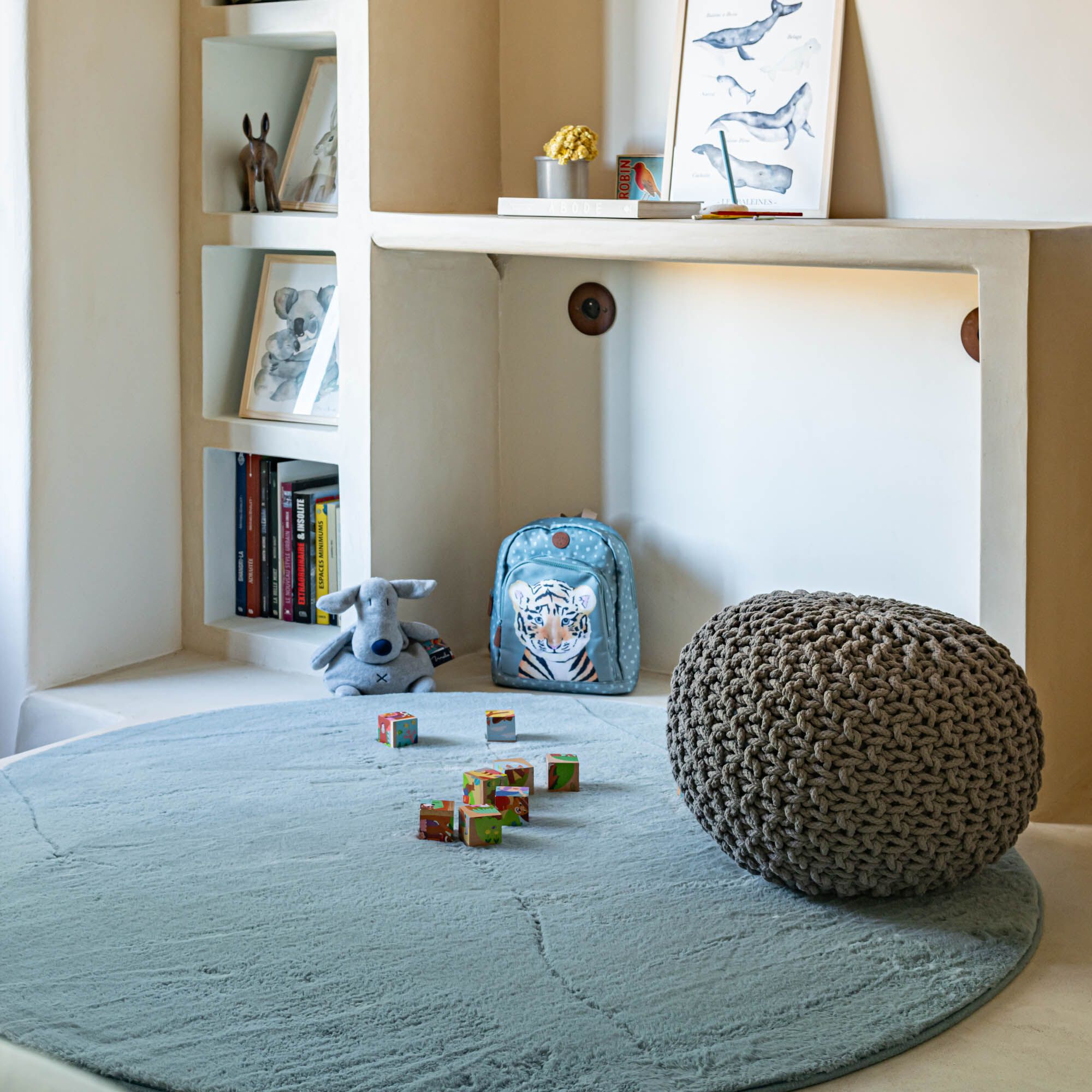 ROBIN - Tapis rond imitation fourrure - bleu calaluna D70cm