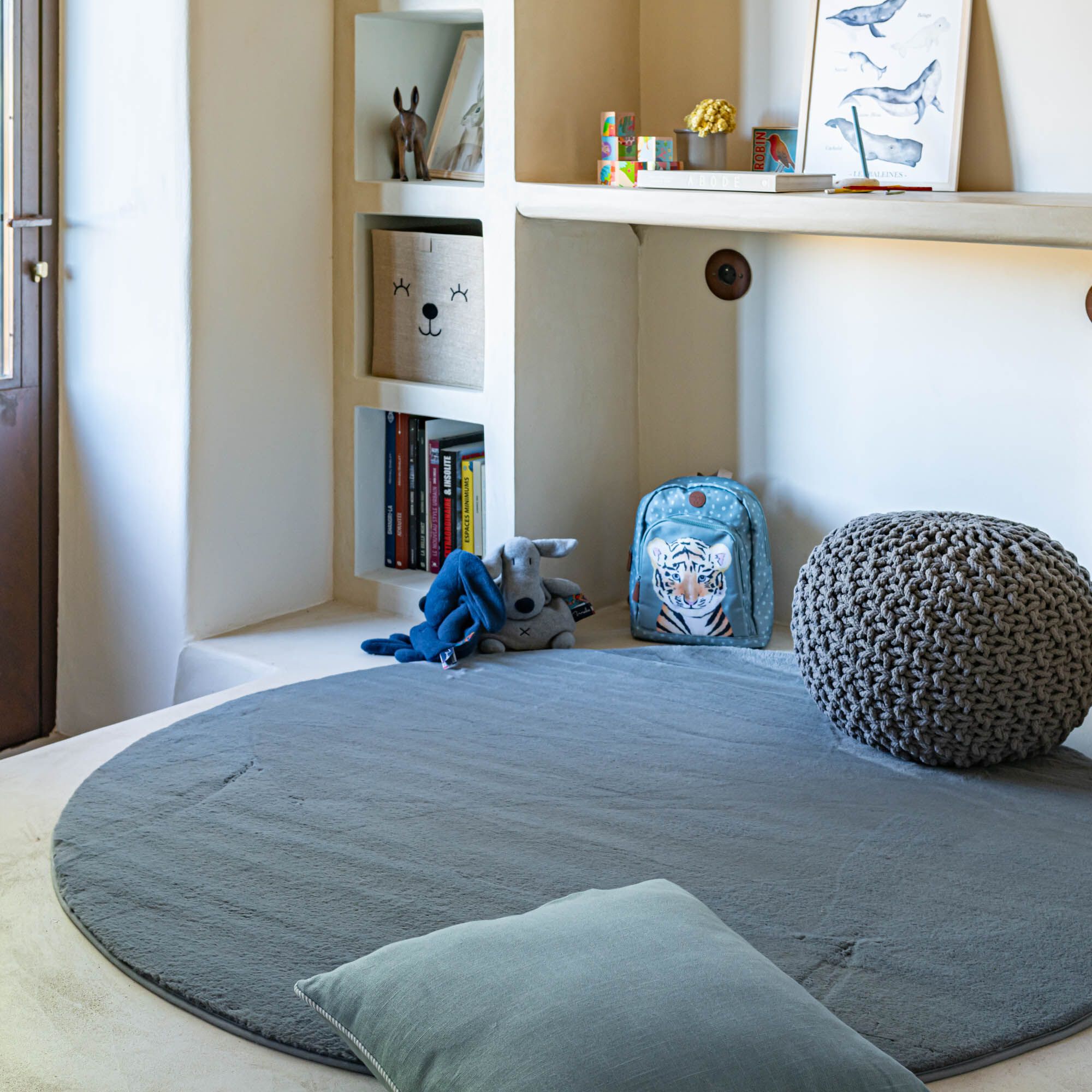 ROBIN - Tapis rond imitation fourrure - gris restanque D70cm