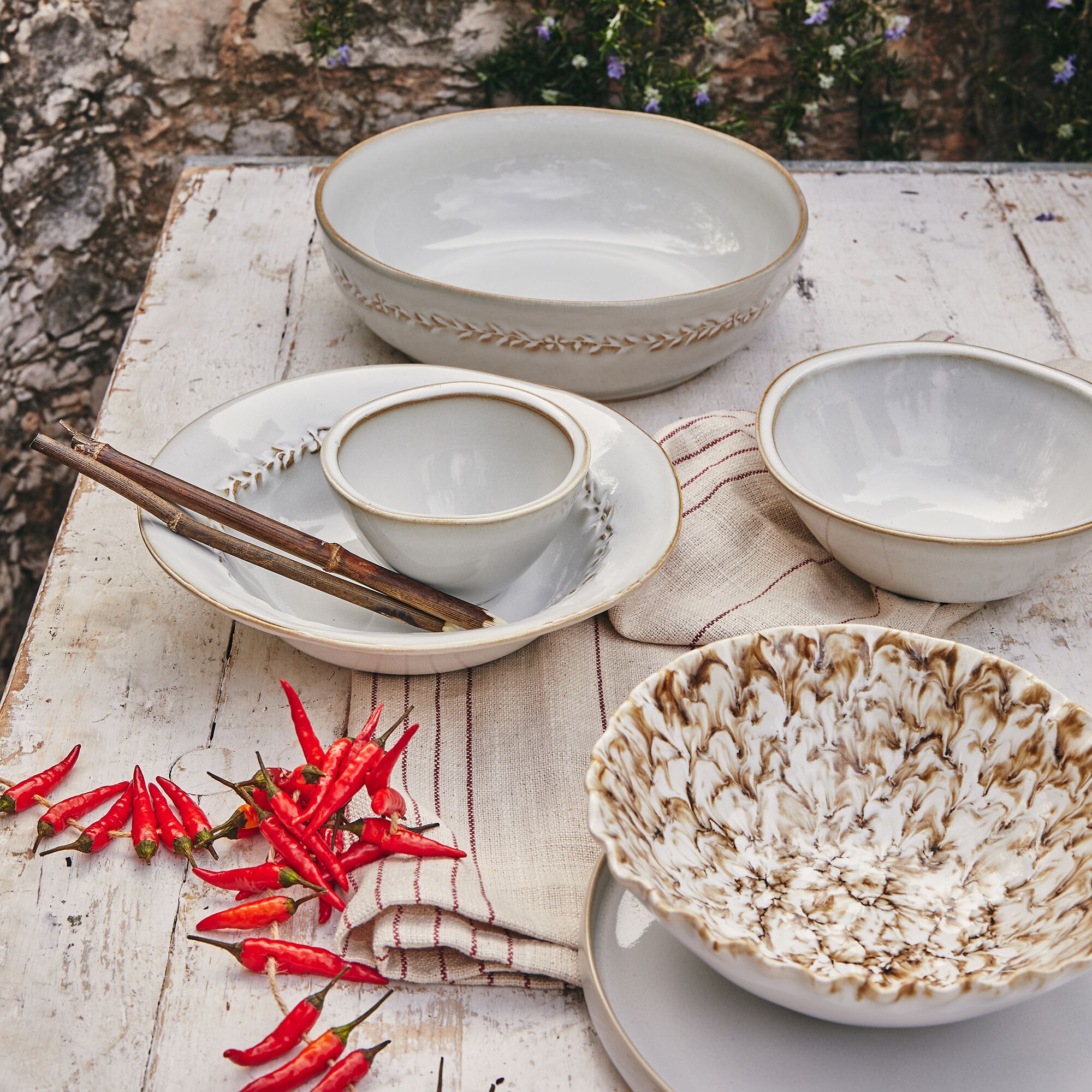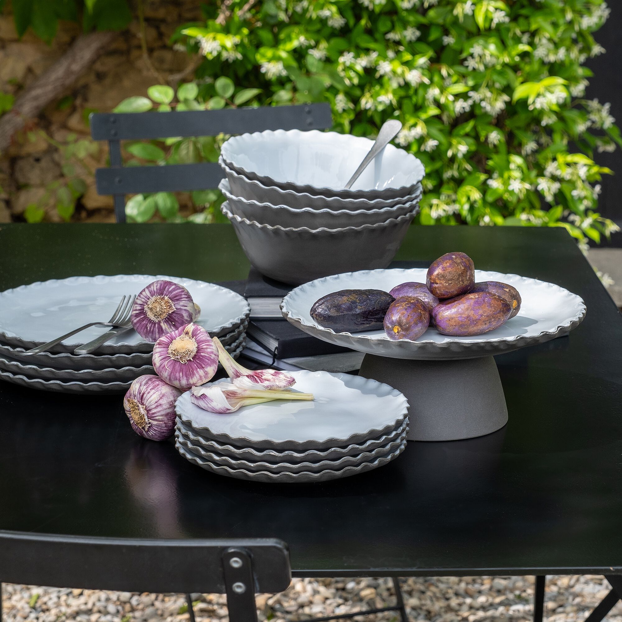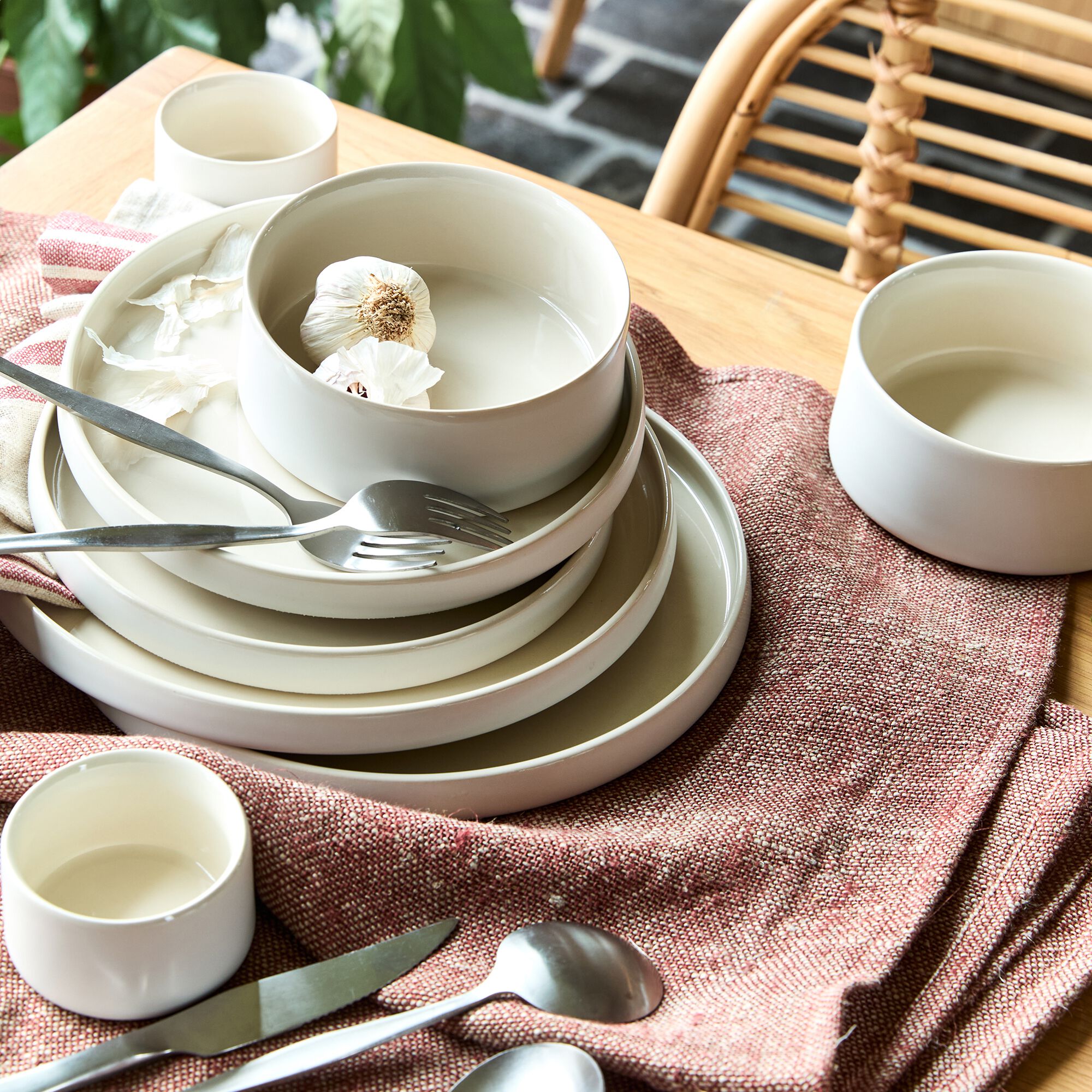KYMA - Service de vaisselle en grès - blanc ventoux
