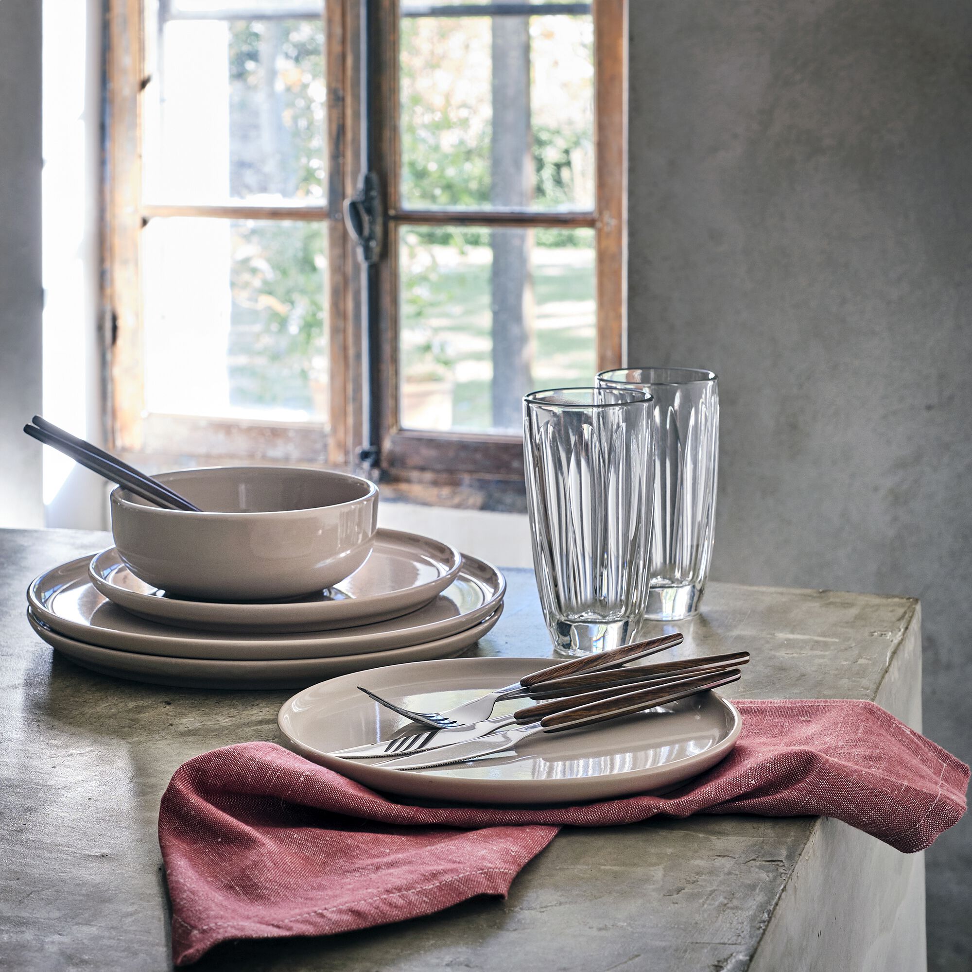STRIE - Service de vaisselle en grès - beige