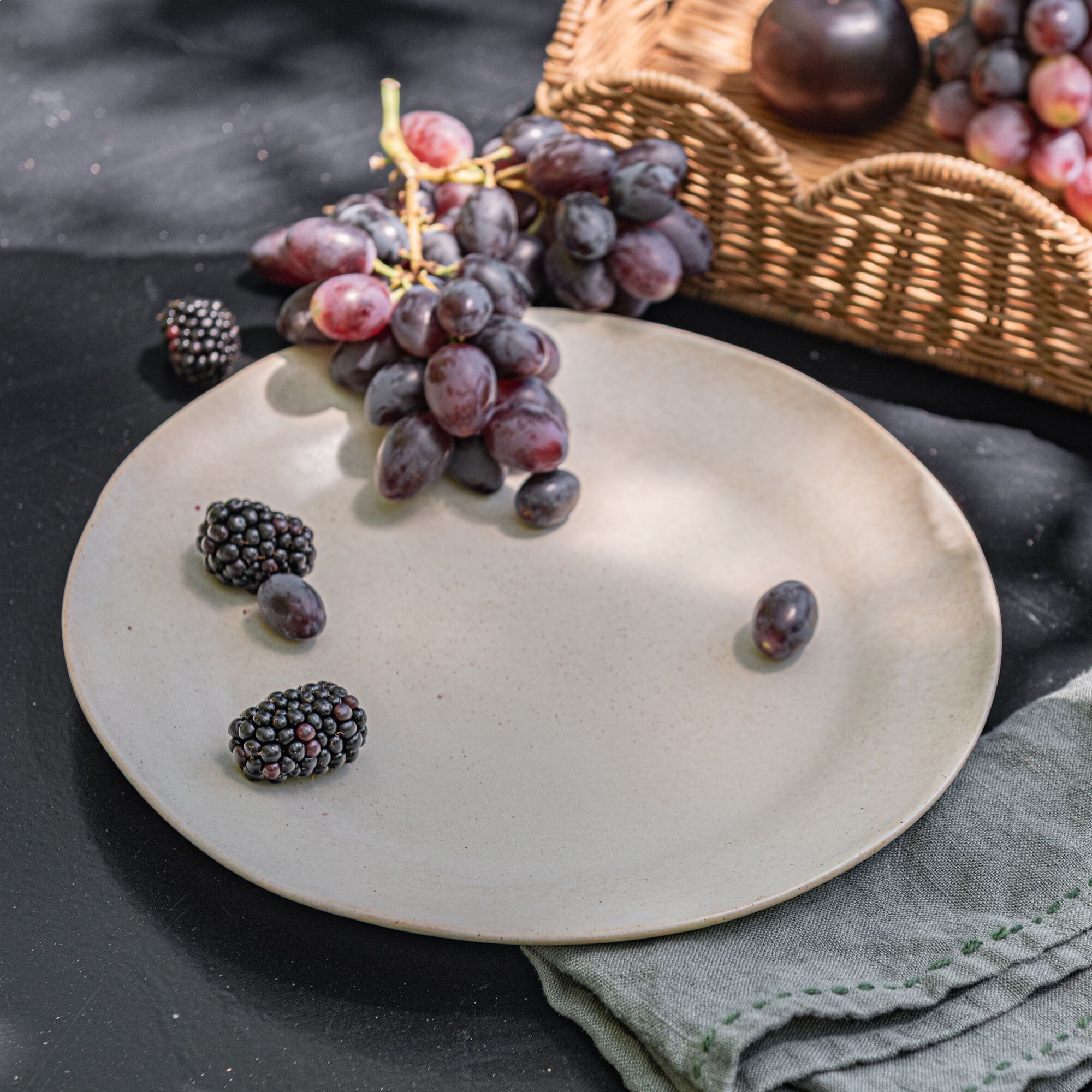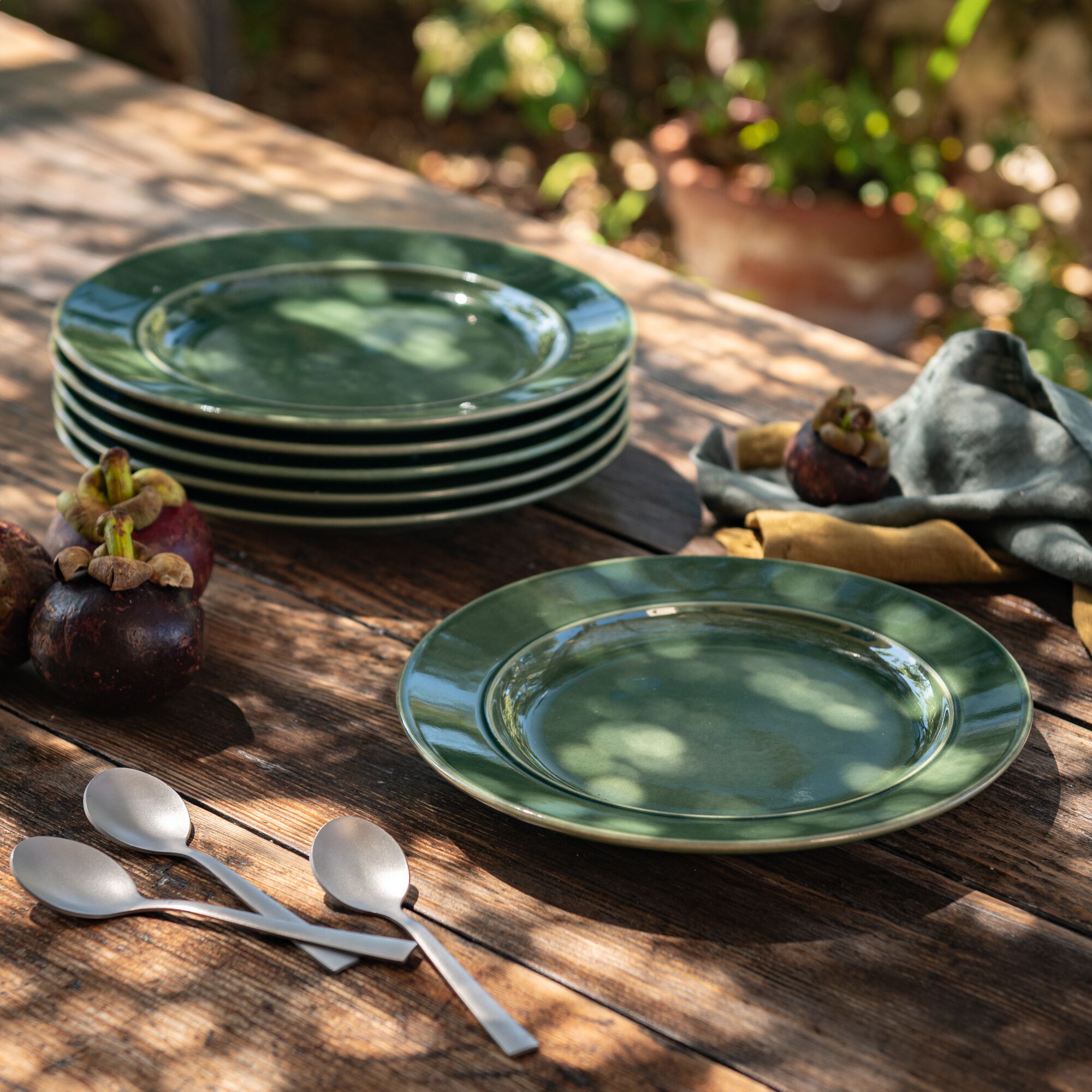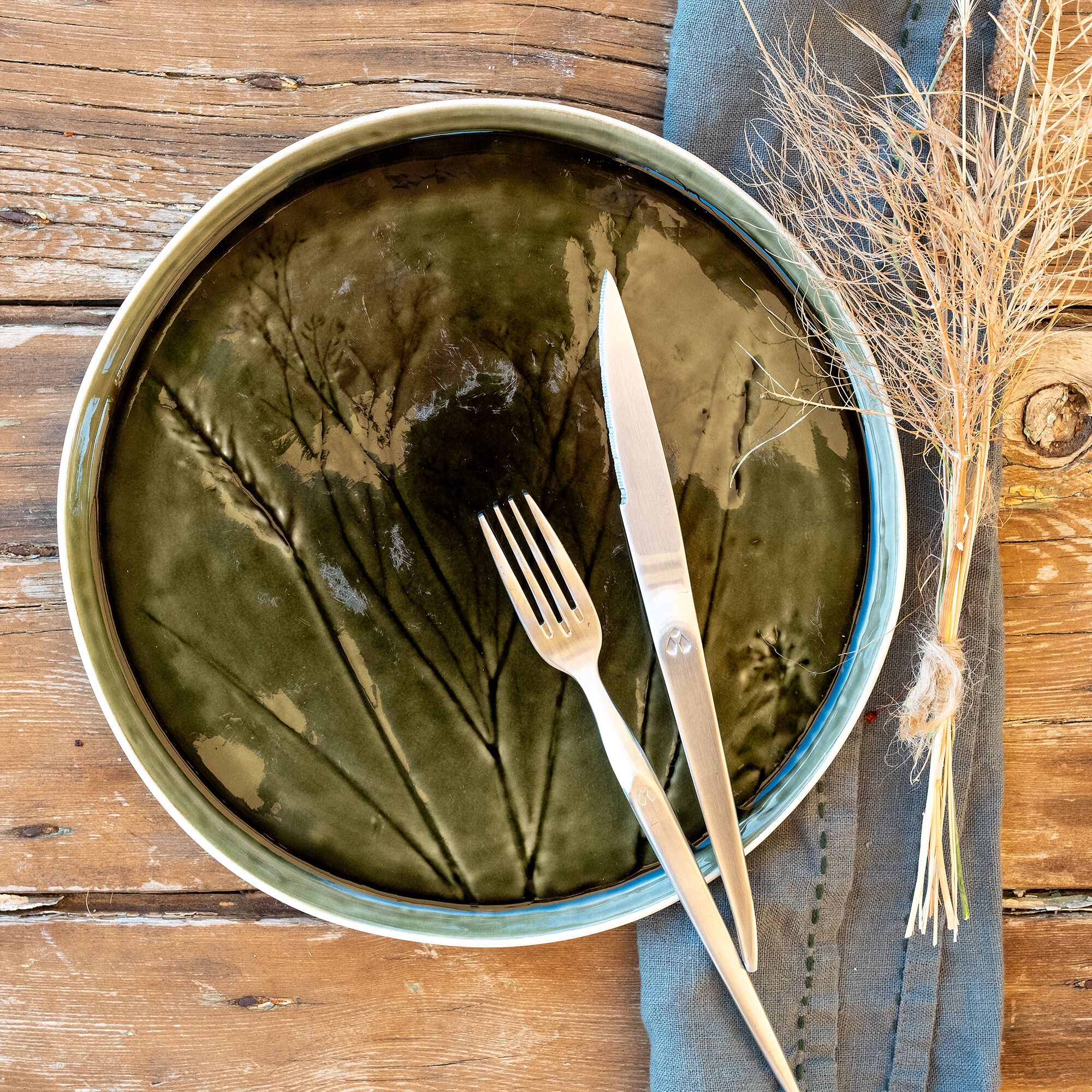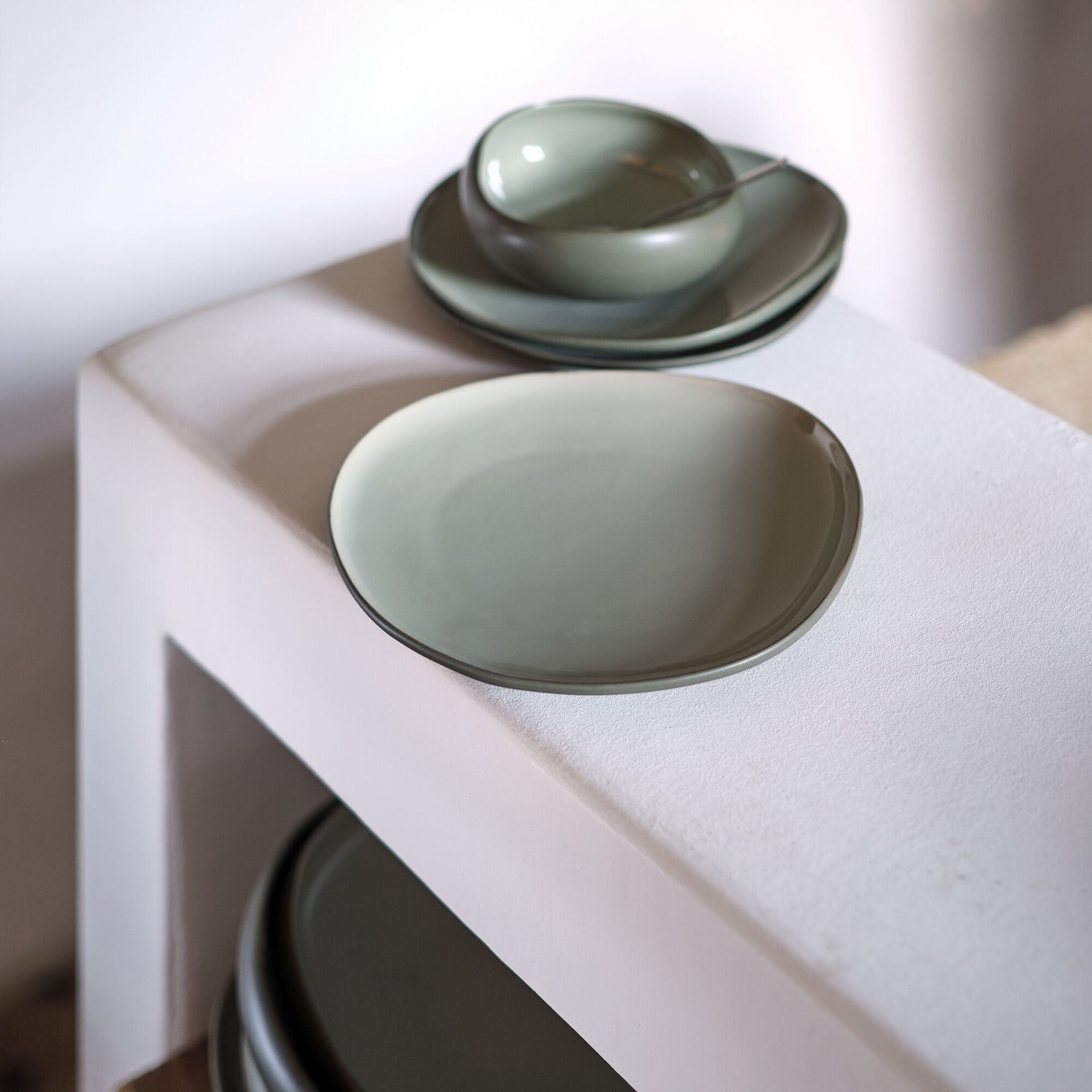 KYMA - Assiette à dessert en grès D21cm - vert olivier