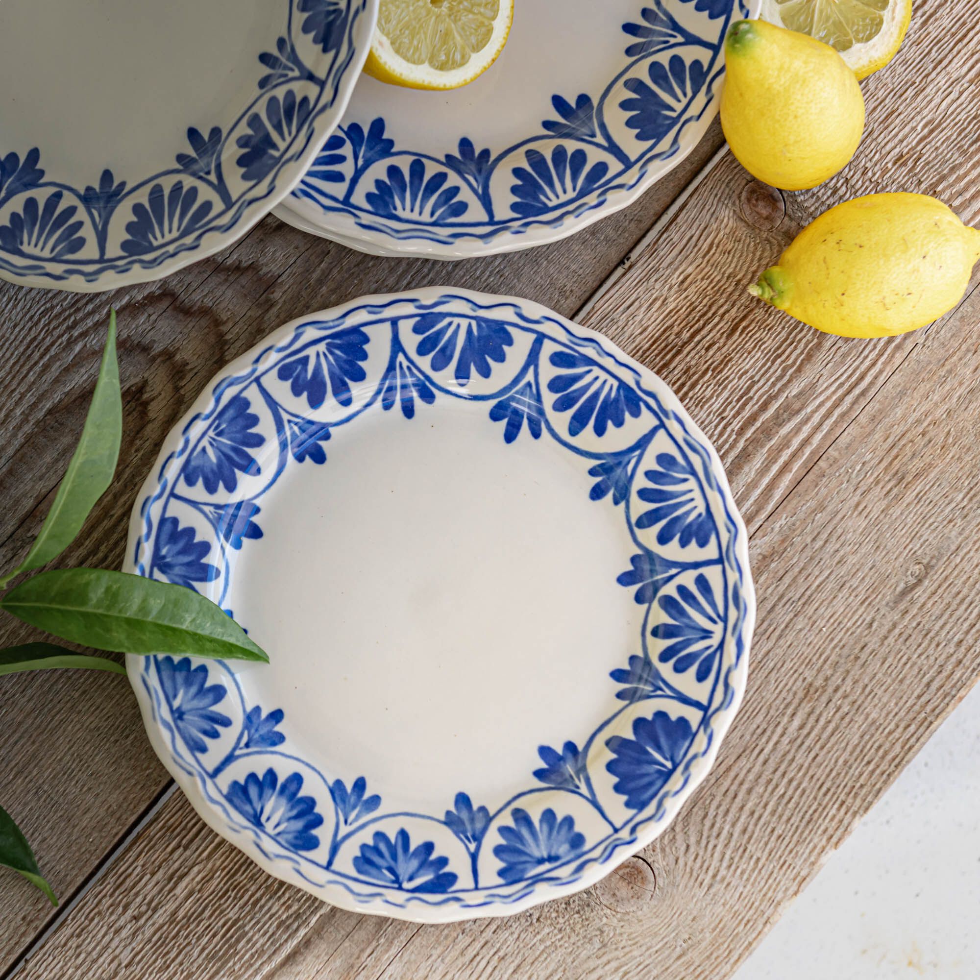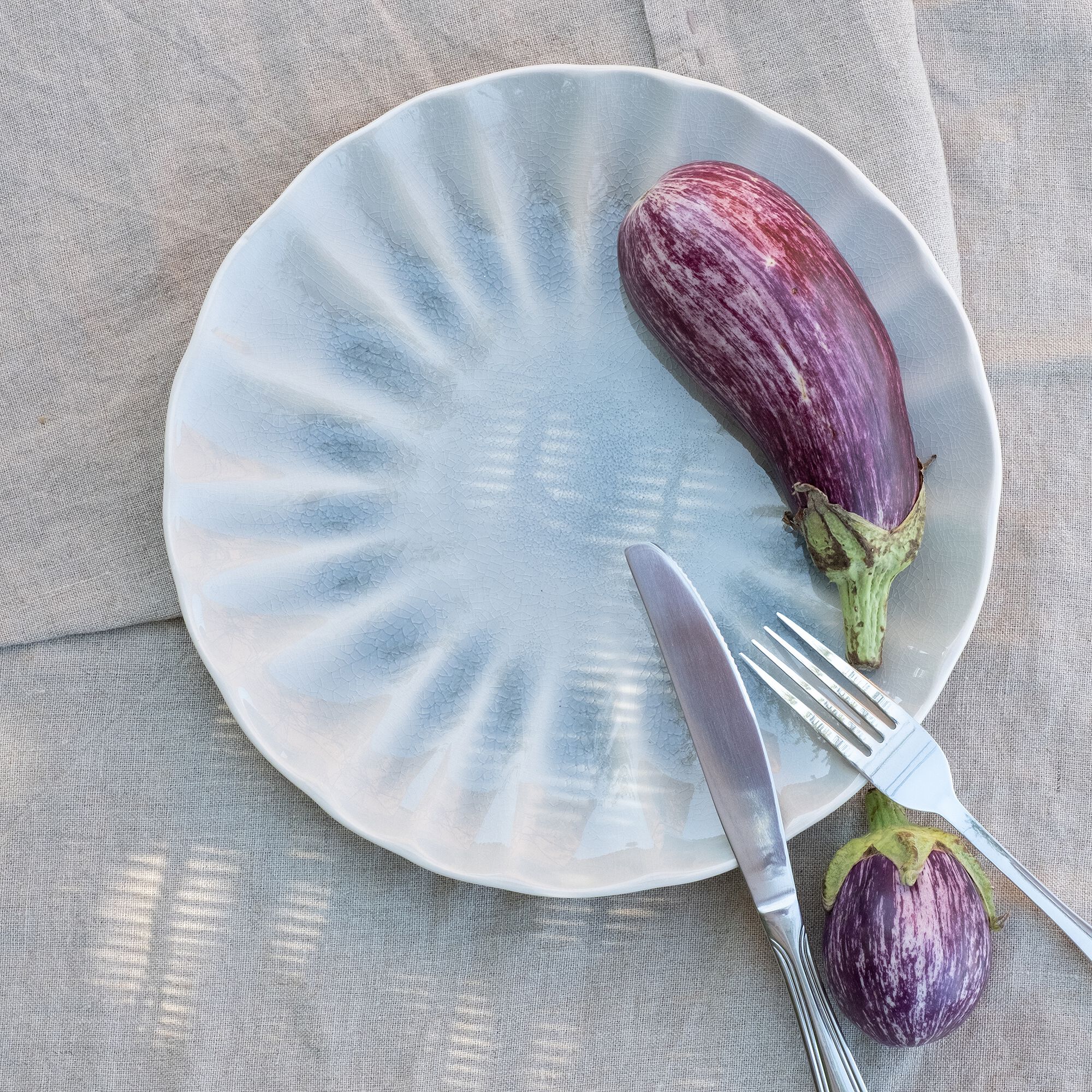 GIULIA - Assiette plate ondulée en grès D26,5cm - bleu
